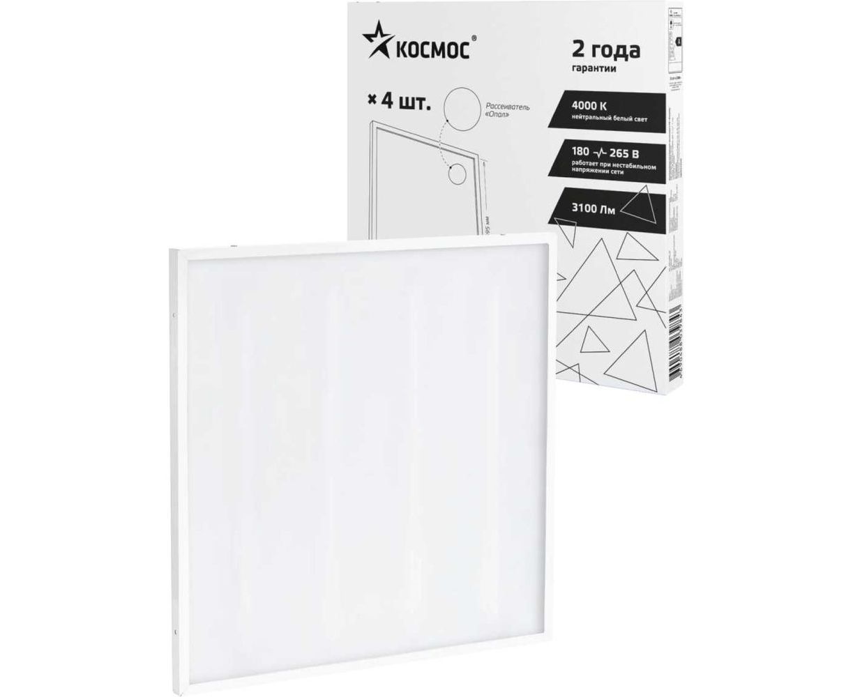 Светодиодный светильник КОСМОС ДВО 36Вт 595x595 4000К 3100 Лм опал IP20, KOC_DVO36W4K_OP