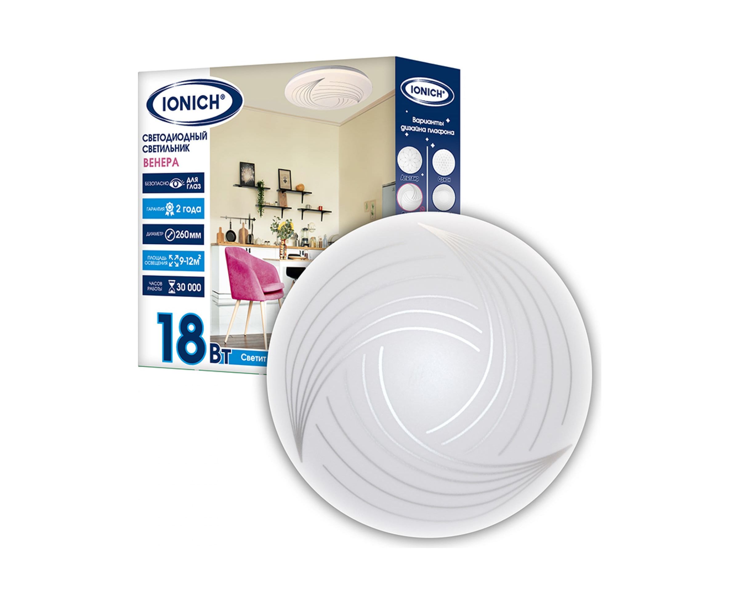 - Светодиодный декоративный светильник IONICH Венера серия 2218, 18 Вт 260 мм IP20 1691 изготовлен из высококачественных, лёгких, прочных и экологически безопасных материалов.