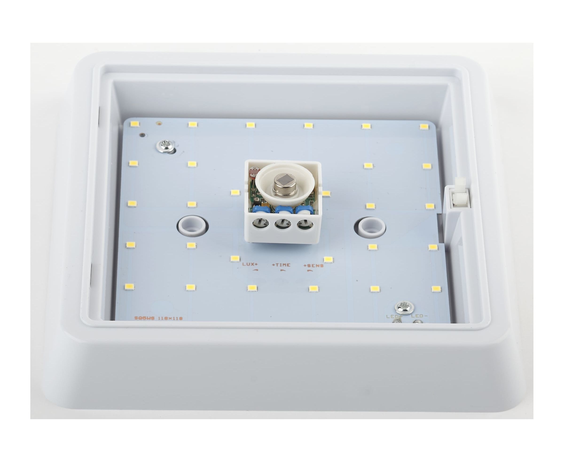 Светодиодный квадратный светильник ЭРА SPB4154KMWS 15Вт 4000К 1200лм 190x38 БЕЛЫЙ с датчиком движения Б0022451 подходит для освещения блока ЖКХ, гаражей, балконов, атак же других внутренних помещений. Радиус действия датчика: до 6 м. Датчик оснащен настройками: Настройка времени работы после срабатывания. От 10 секунд (минимум) до 10 минут (максимум).Настройка уровня освещенности. В позиции "солнце” светильник включается при освещённости менее 2000 Люкс В позиции "луна” светильник включается при освещённости меньше 10 Люкс.