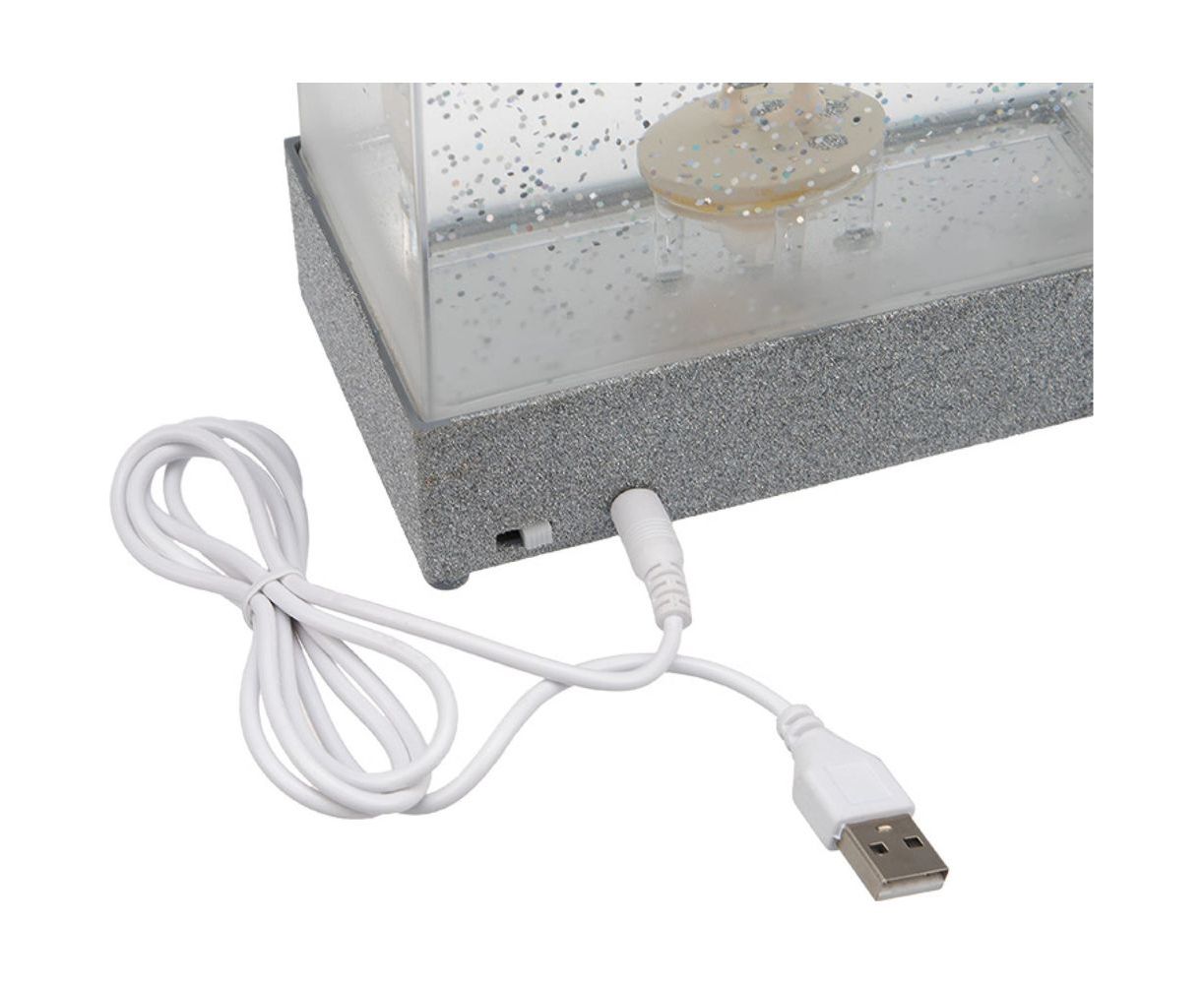 Фонарь наполнен специальной жидкостью и конфетти, которые при включении начинают циркулировать, создавая атмосферу праздника и уюта.