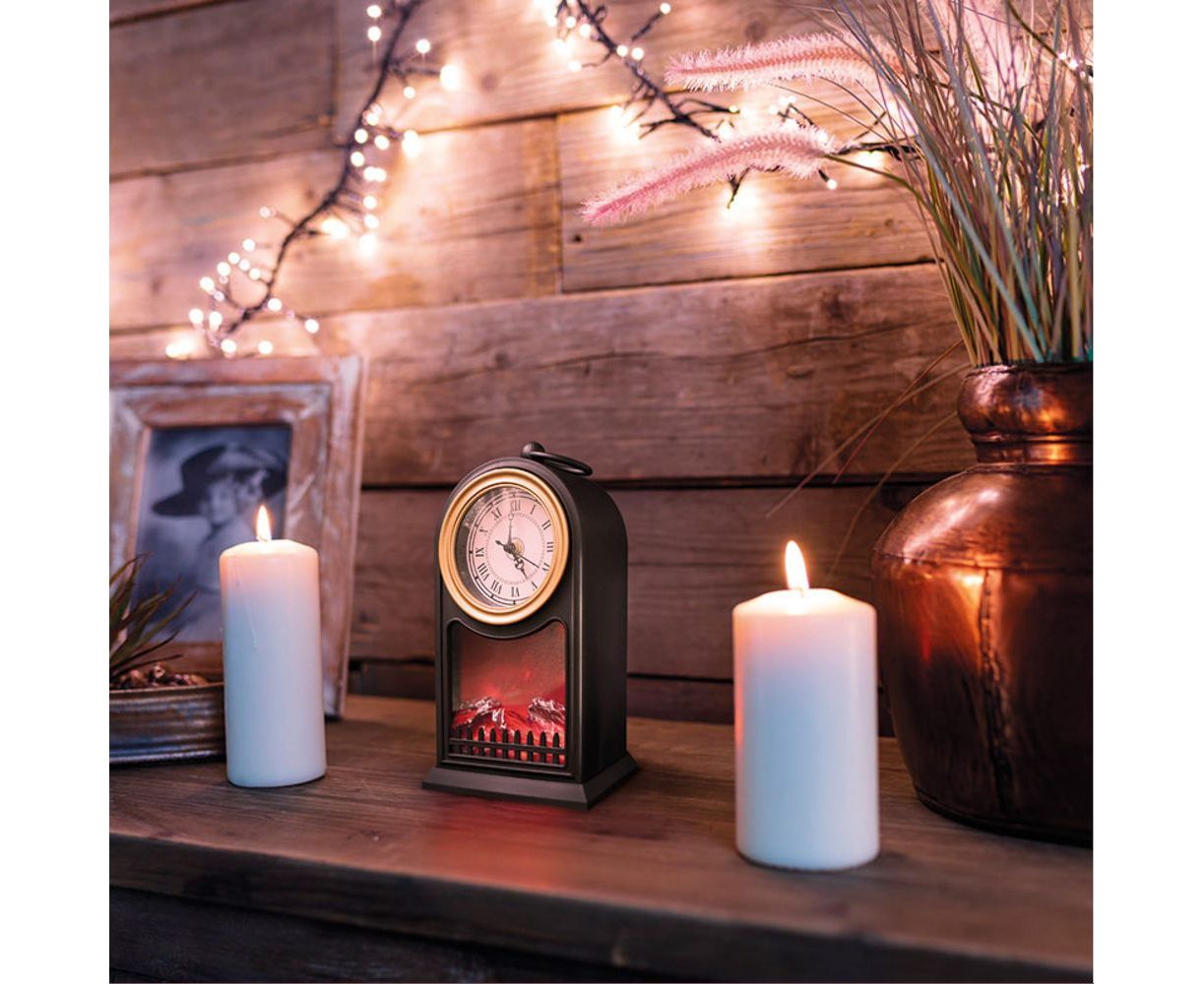 Светодиодный камин NEON-NIGHT Старинные часы с эффектом живого огня 14,7x11,7x25см USB 511-020