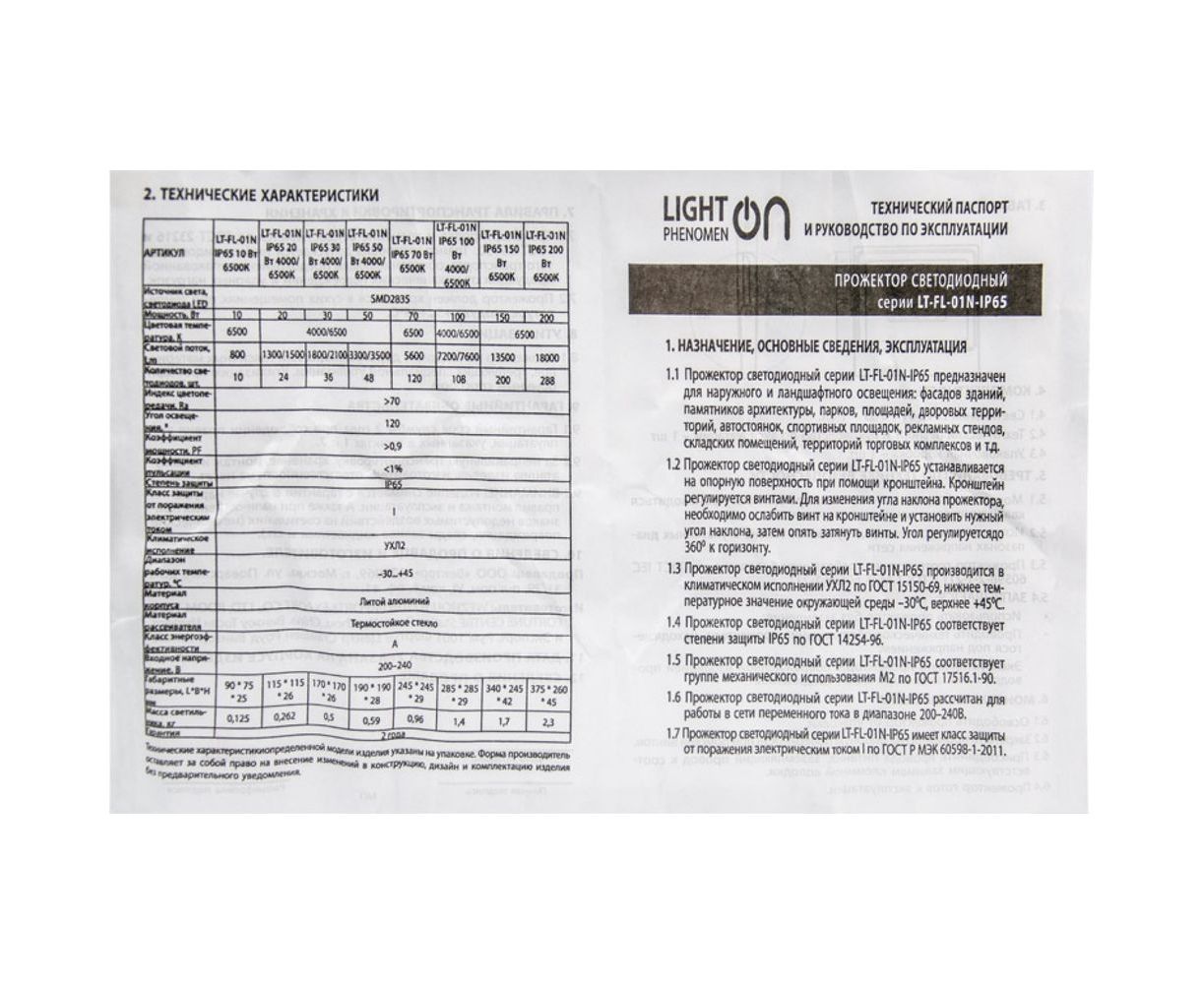 Прожектор LightPhenomenON LT-FL-01N-IP65-150W-6500K LED Е1602-0021