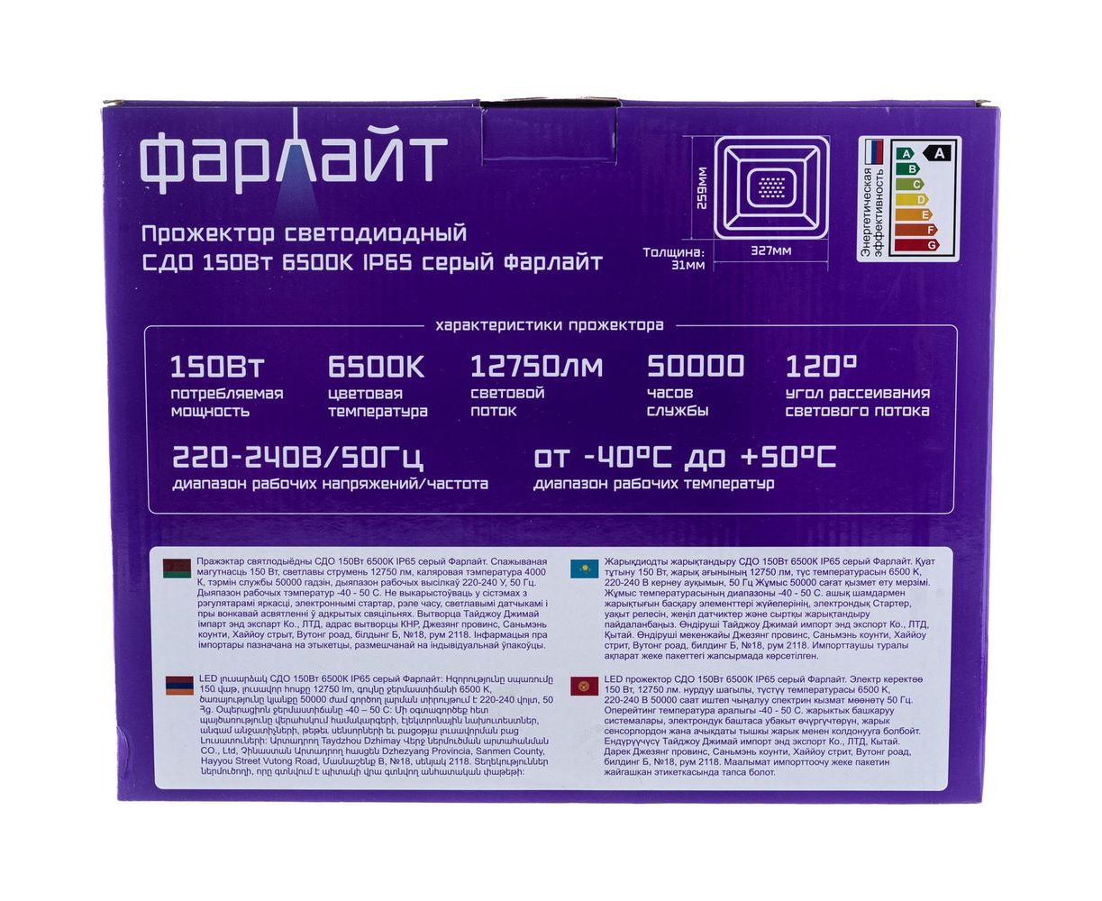 Светодиодный прожектор Фарлайт СДО 150Вт 6500К IP65 серый FAR002044