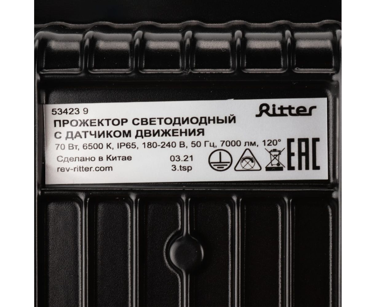 Светодиодный прожектор RITTER серия PROFI 230В 70 Вт 6500К 7000Лм IP65 черный с датчиком движения 53423 9