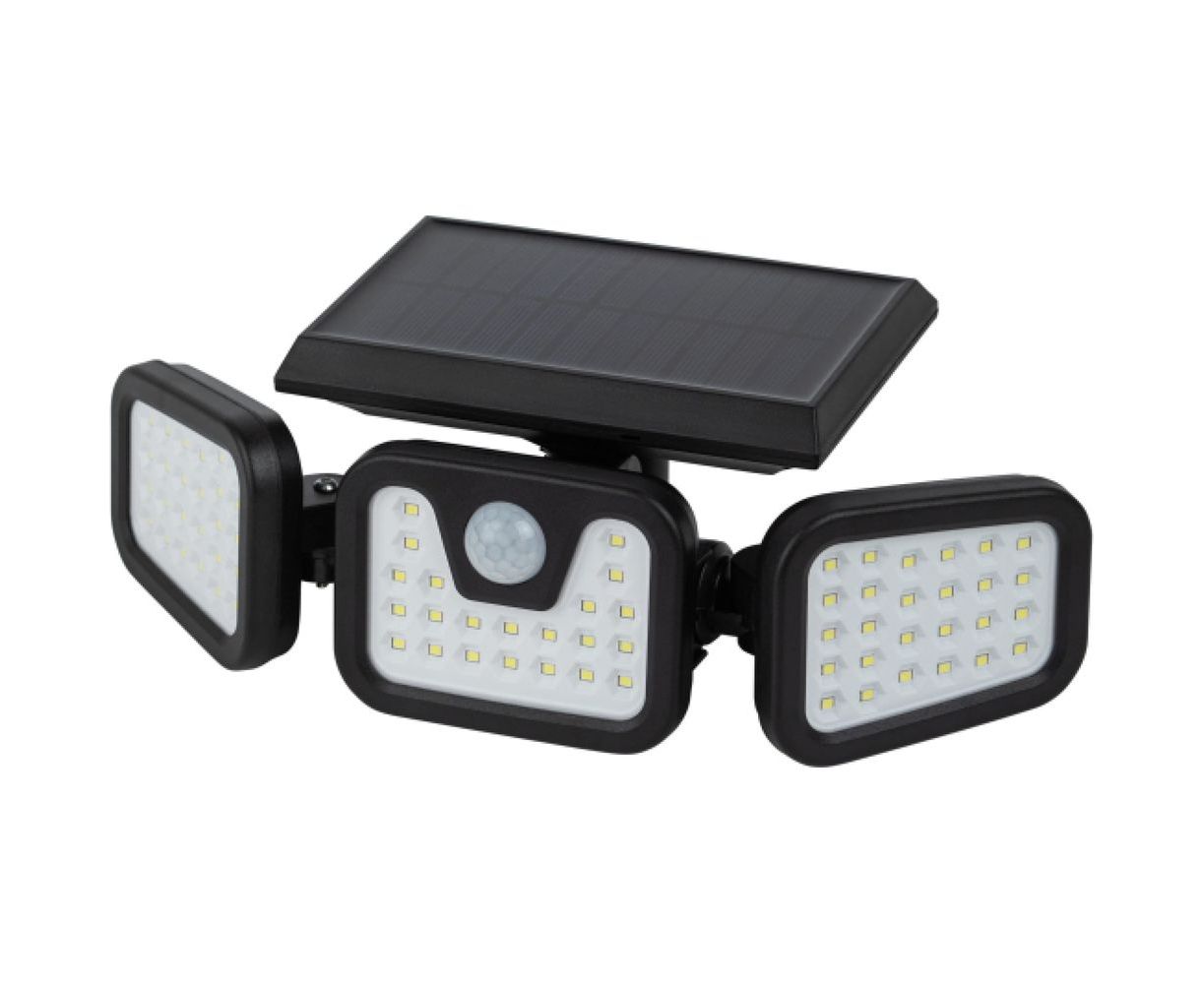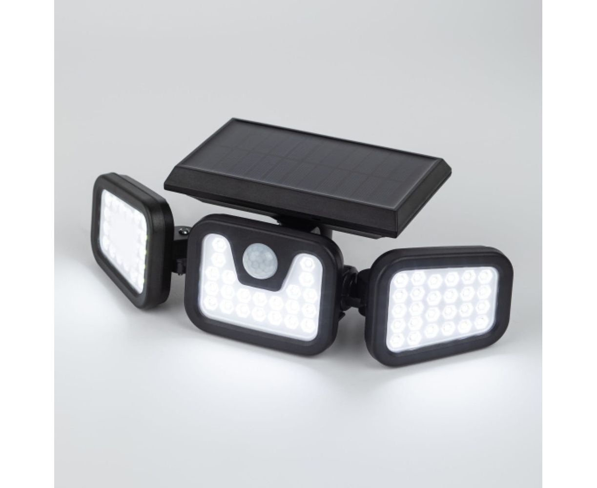 ЭРА ERAFS012-05 (арт. Б0057601) - трёхсекционный фасадный светильник с широким радиусом подсветки (120°). Встроенная солнечная панель в верхней части корпуса. Общее количество светодиодов - 74. Три светодиодных платы формата мультикристалл-СОВ создают яркий заливающий свет. Уличный LED-светильник имеет 3 режима свечения: 1. режим постоянного свечения (при наступлении темноты автоматически включается и светит постоянно в половину яркости; 2. режим подсветки (светит постоянно в половину яркости, при обнаружении движения включает на 30 секунд полную яркость); 3. режим реакции на движение (при наступлении темноты включает 30% яркости, при появлении движения включает полную яркость на 30 сек). Датчик движения отлично экономит заряд солнечной батареи, что позволяет светильнику проработать от накопленной днём световой энергии в течение всей ночи.
