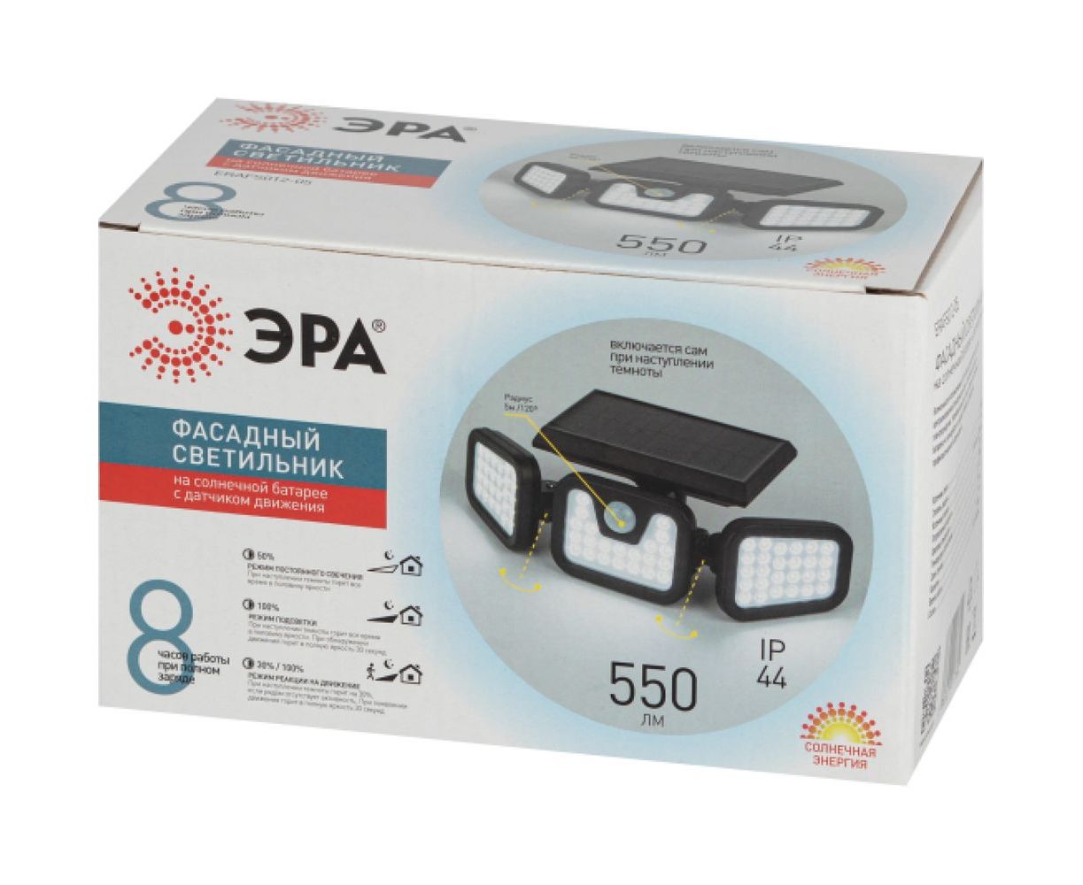 Уличный светильник ЭРА ERAFS01205 на солнечной батарее, настенный с датчиком, движения Б0057601