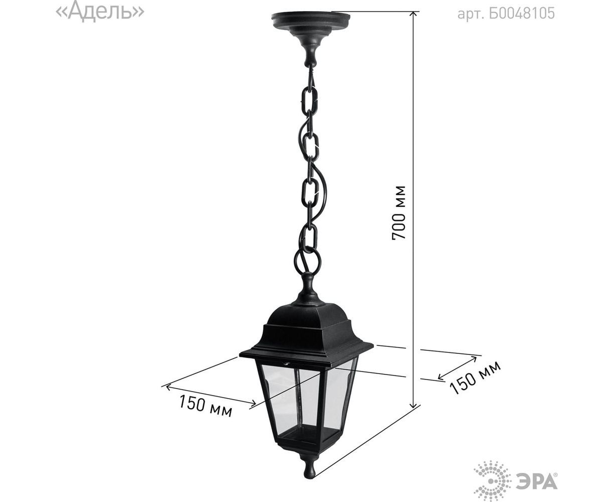 Садово-парковый подвесной светильник ЭРА НСУ 0460001 адель, четырехгранный, Б0048105 предназначен для декоративной подсветки садово- парковых зон, прогулочных дорожек, коттеджей, функционально- декоративного освещения скверов, парков и бульваров, а также для подсветки фасадов зданий, архитектурных памятников и различных строений.