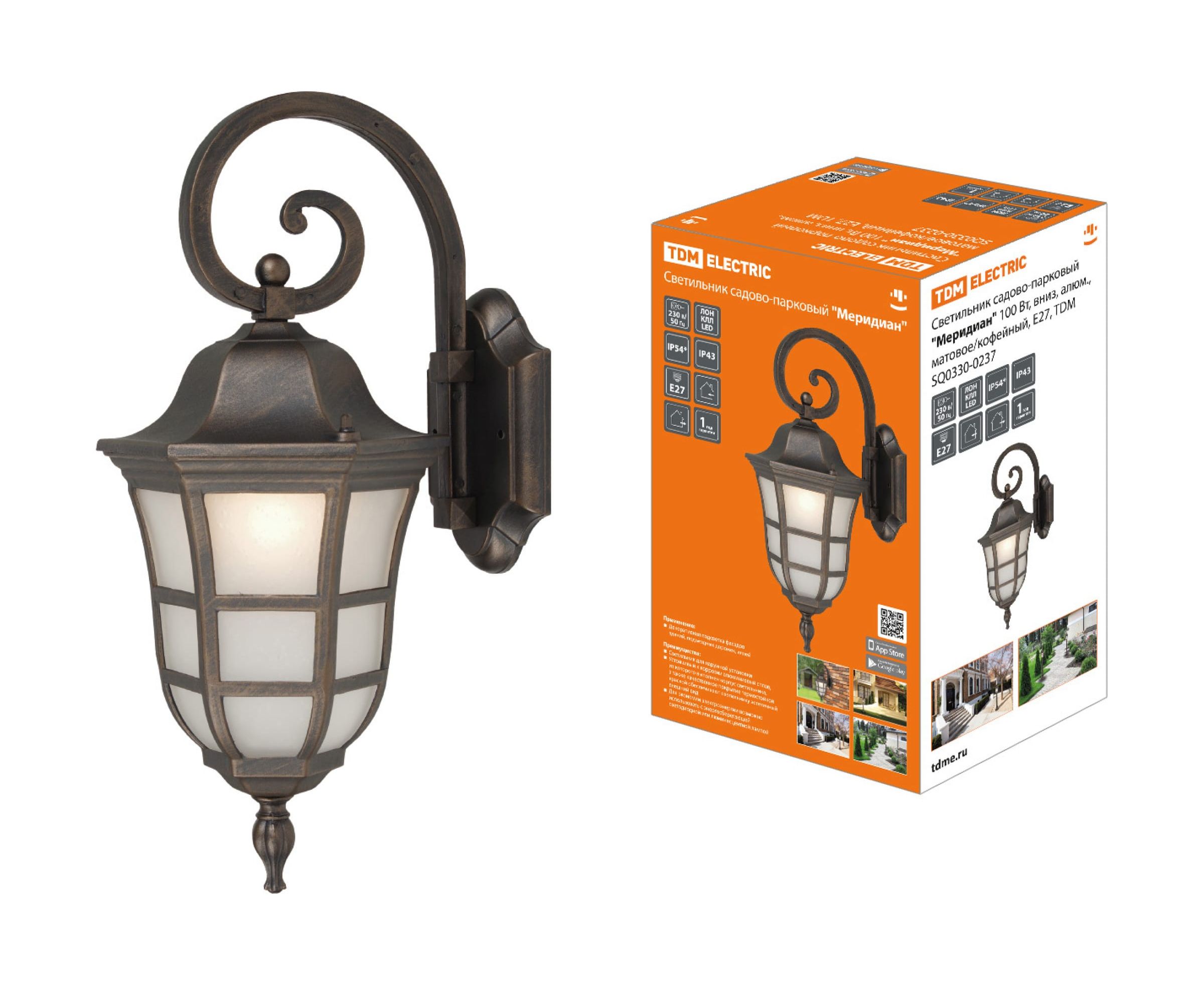 Садово-парковый светильник TDM ""Меридиан"" 100 Вт, вниз, алюминий, матовое/кофейный, Е27, SQ0330-0237