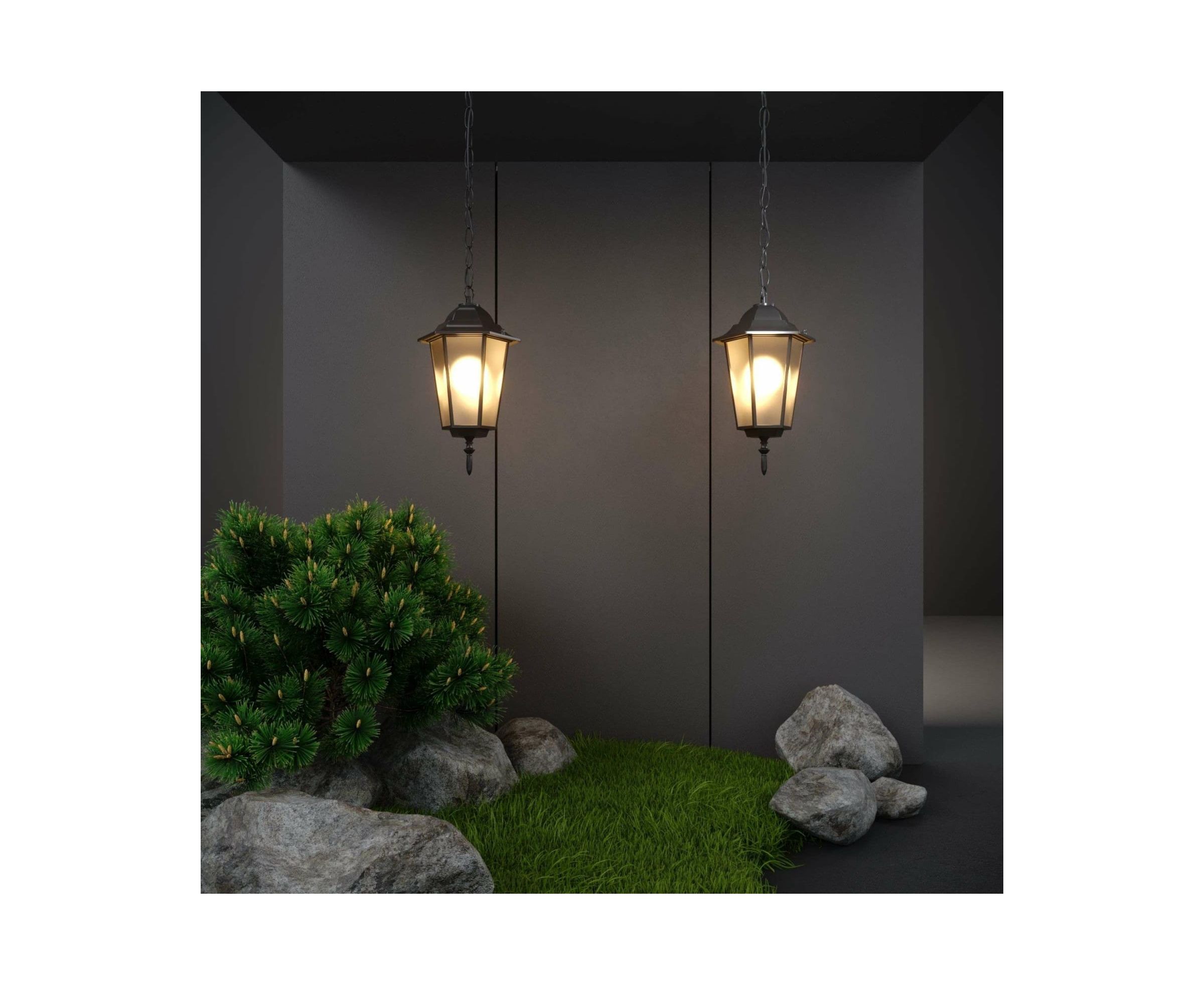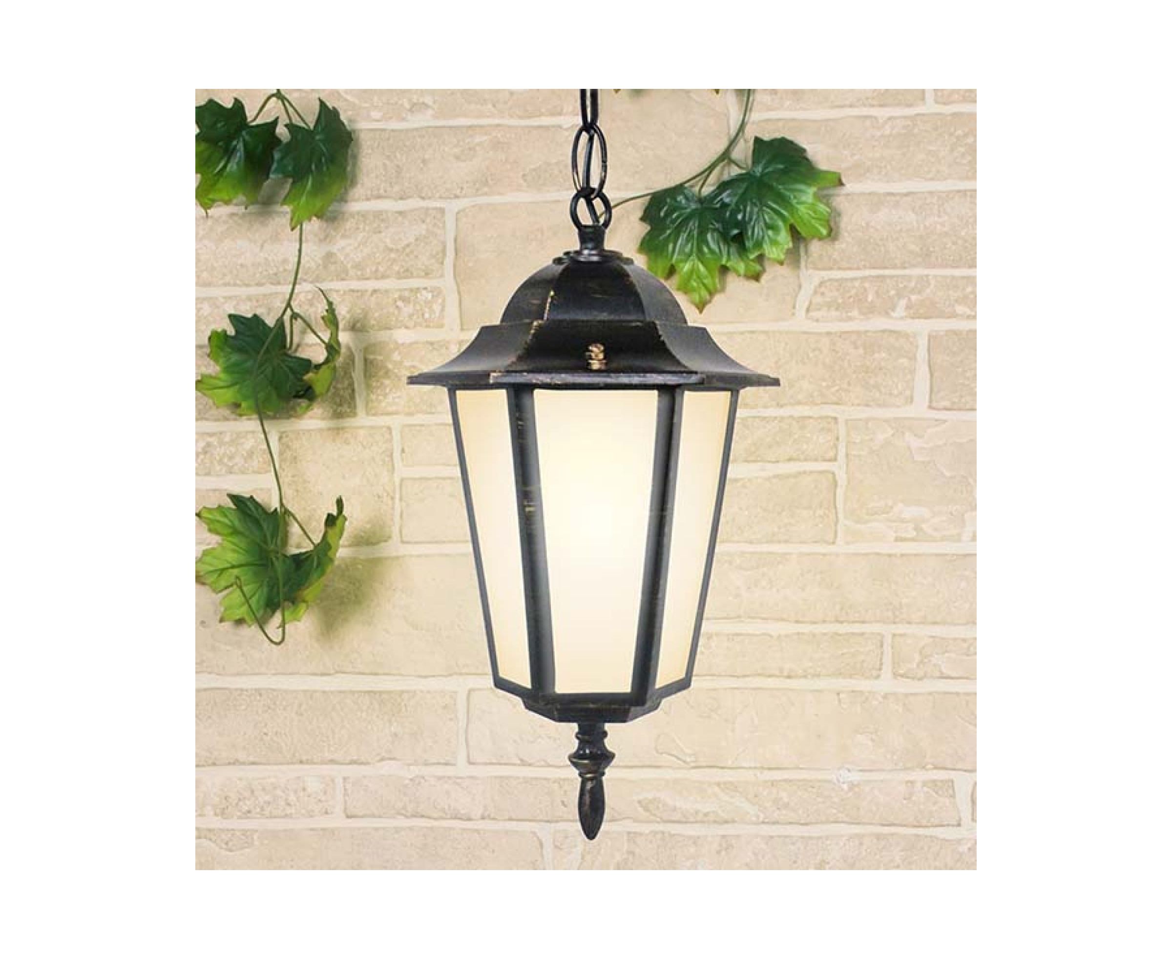 Патрон рассчитан на максимальную мощность ламп накаливания 60 Вт. Корпус светильника выполнен из высококачественного и прочного металла с надежным покрытием. Уличный подвесной светильник GL 1004H черное золото легко монтируется при помощи крепежной планки, которая обеспечивает надежную фиксацию светильника.