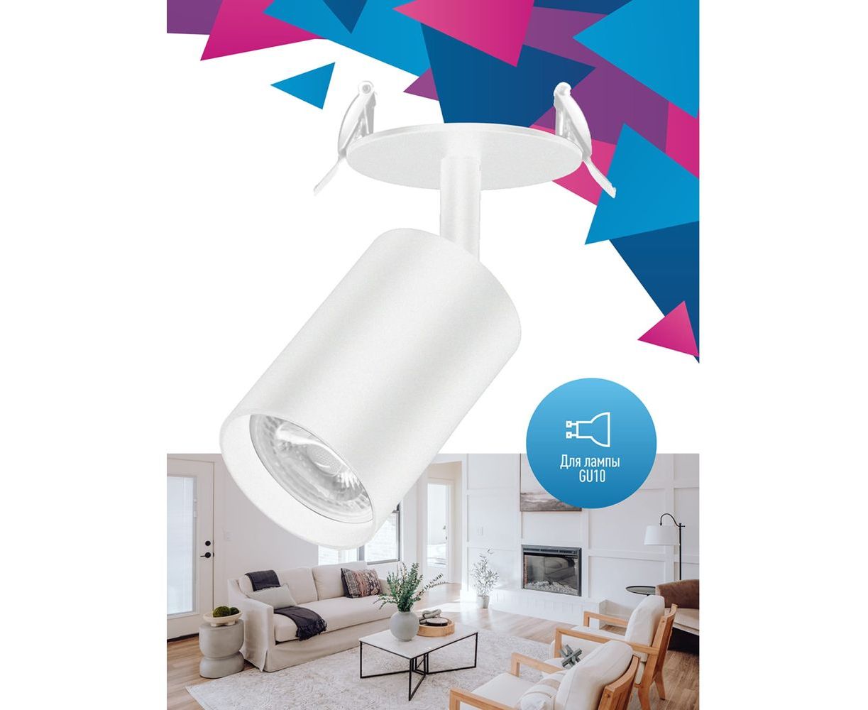 Накладной поворотный светильник КОСМОС белый под лампу GU10, KFixtGU10_001White легко монтируются в подвесной (ГКЛ, реечный) или натяжной потолок. Современный дизайн корпуса (в стиле Ikea). Металлический корпус.
