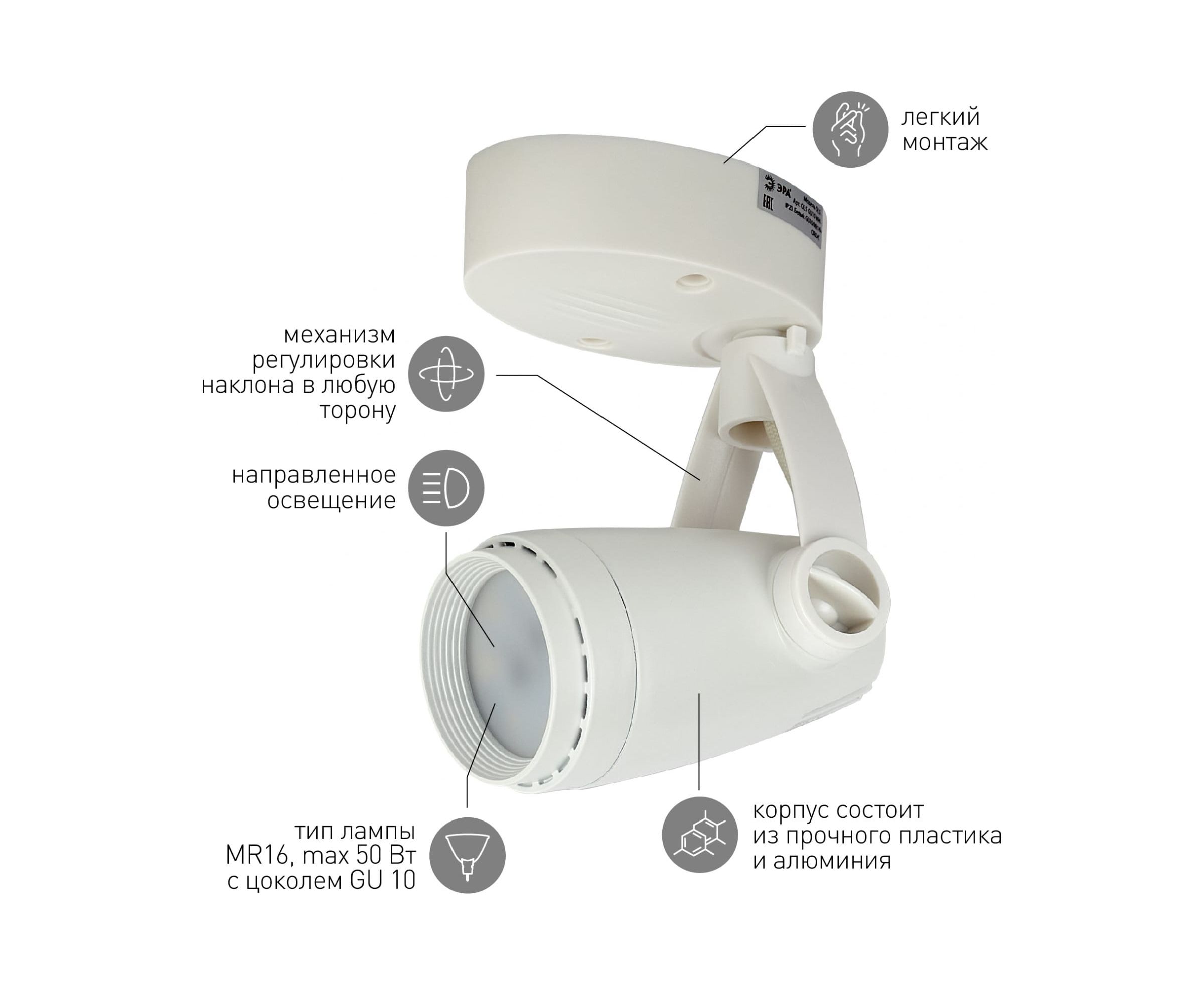 Накладной светильник ЭРА OL5 GU10 WH белый Б0044271 направленного света подчеркнет структуру материалов стен и создаст интересный световой рисунок на стенах. Можно использовать как по отдельности, так создавать целые системы.