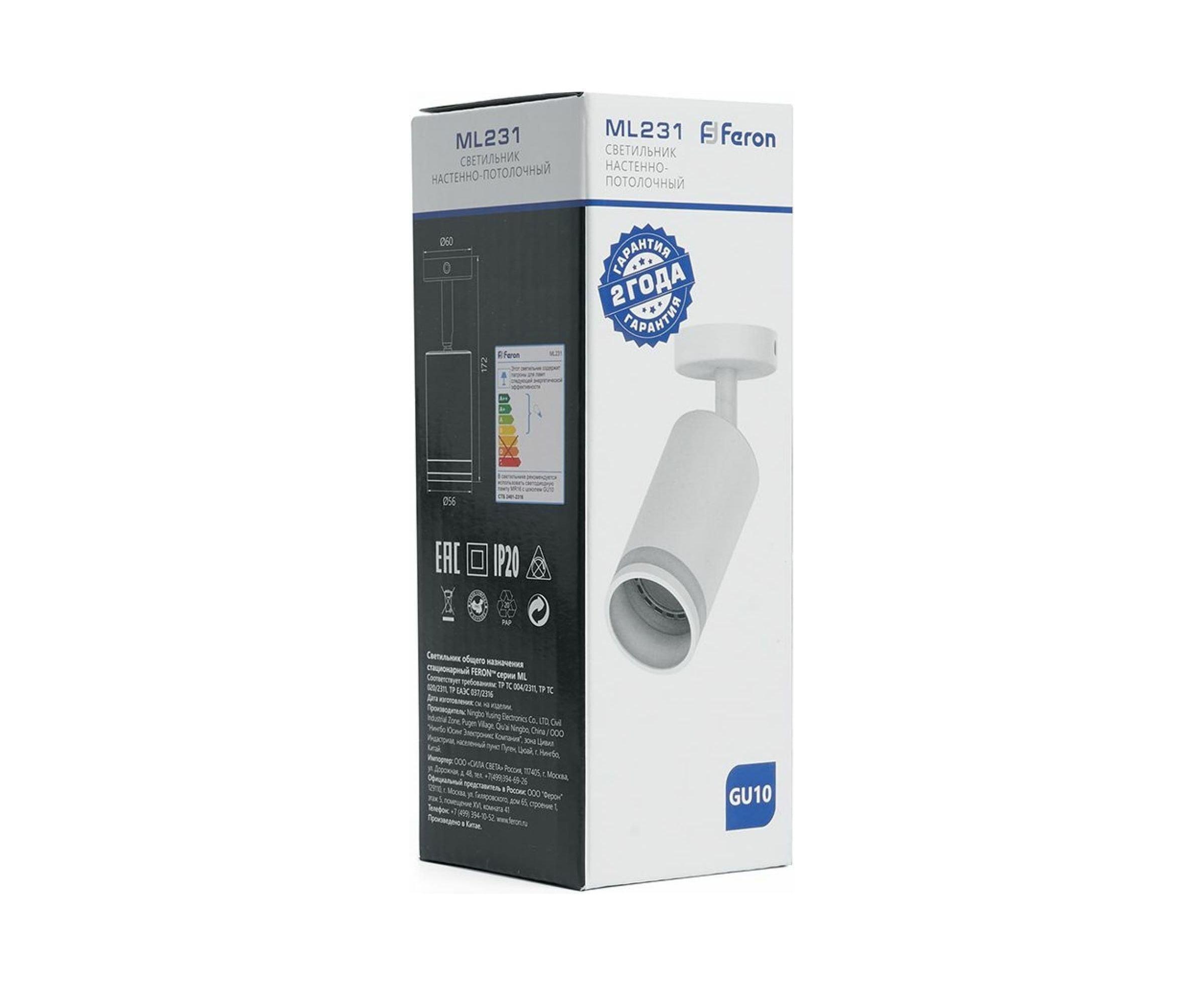 Настенно-потолочный светильник FERON под лампу 1х50W GU10, белый ML231 41486