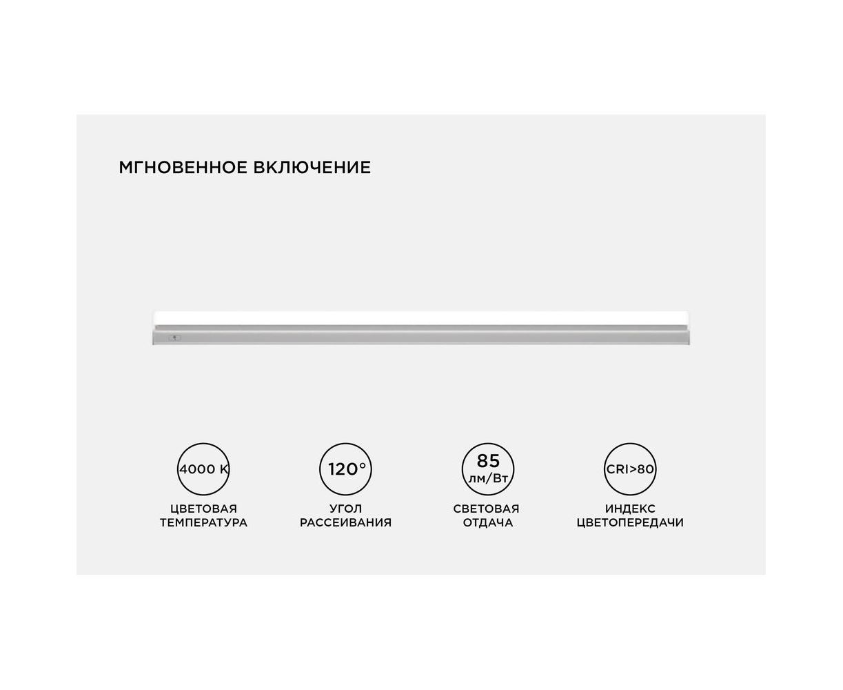 Светодиодный линейный светильник Apeyron touch сенсор, аналог Т5, 8Вт, 680Лм, 4000к, ip20, 570x23x35мм, поликарбонат/ 30-03 управляется одним касанием благодаря сенсорному выключателю. Излучает световой поток в 680 Лм, потребляя при этом 8 Вт, что является эквивалентом лампы накаливания 65 Вт. В светильнике используются светодиоды с дневным белым цветом свечения и цветовой температурой 4000 К, которая наиболее близка к естественному солнечному свету.