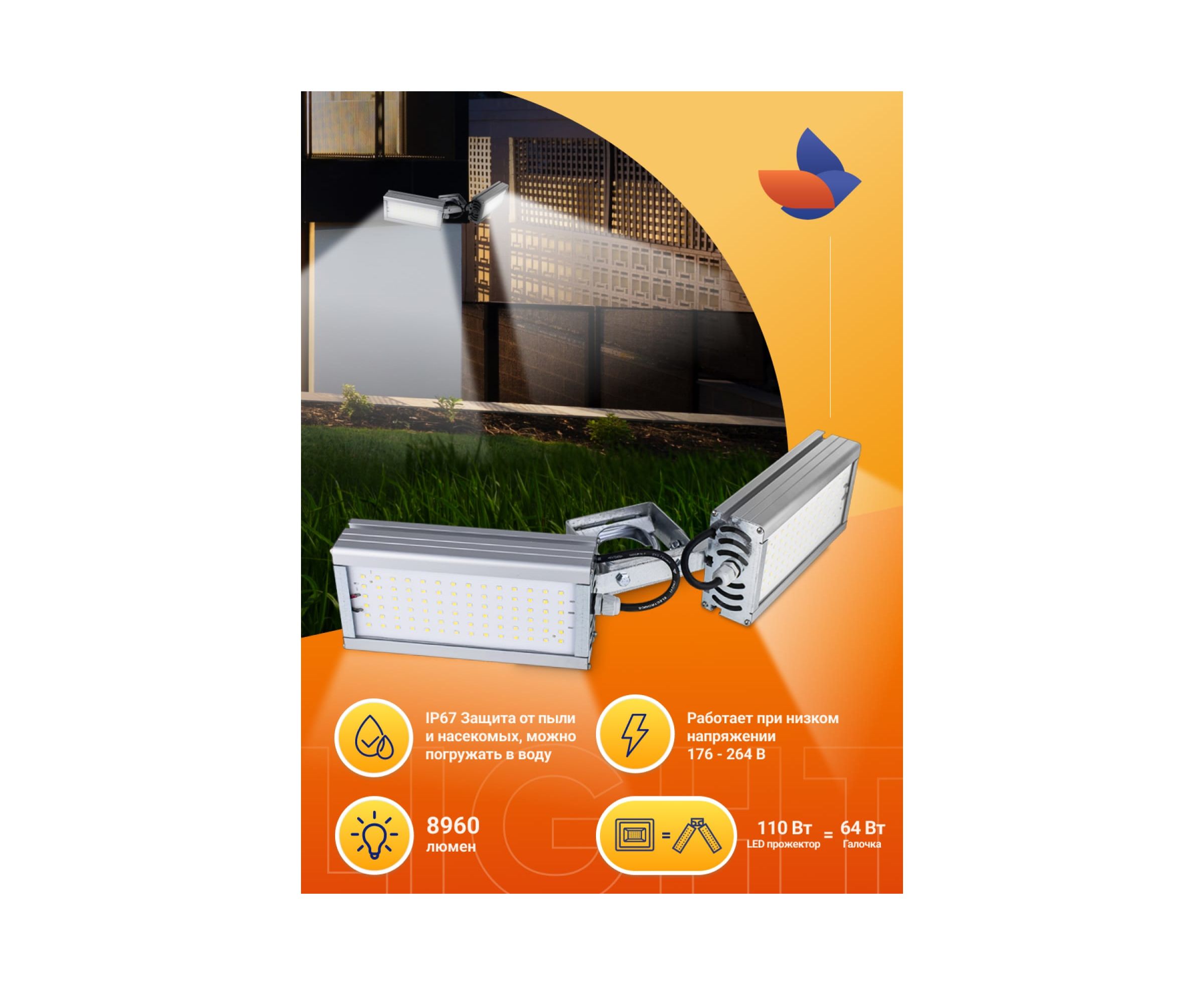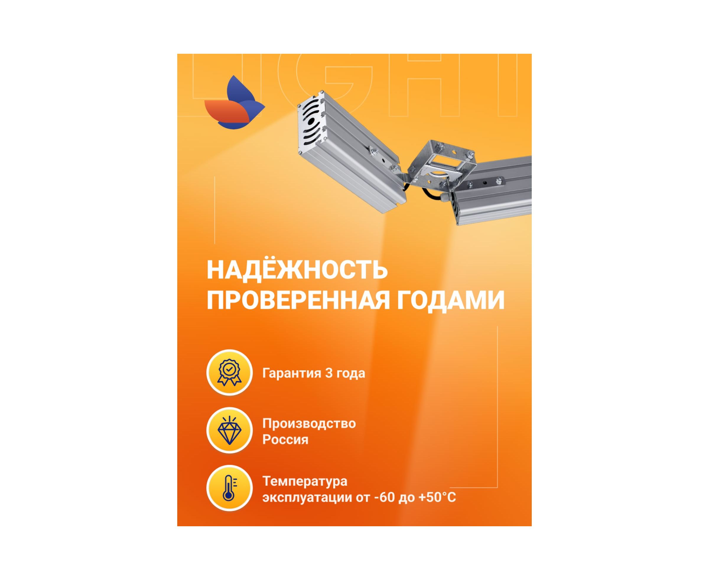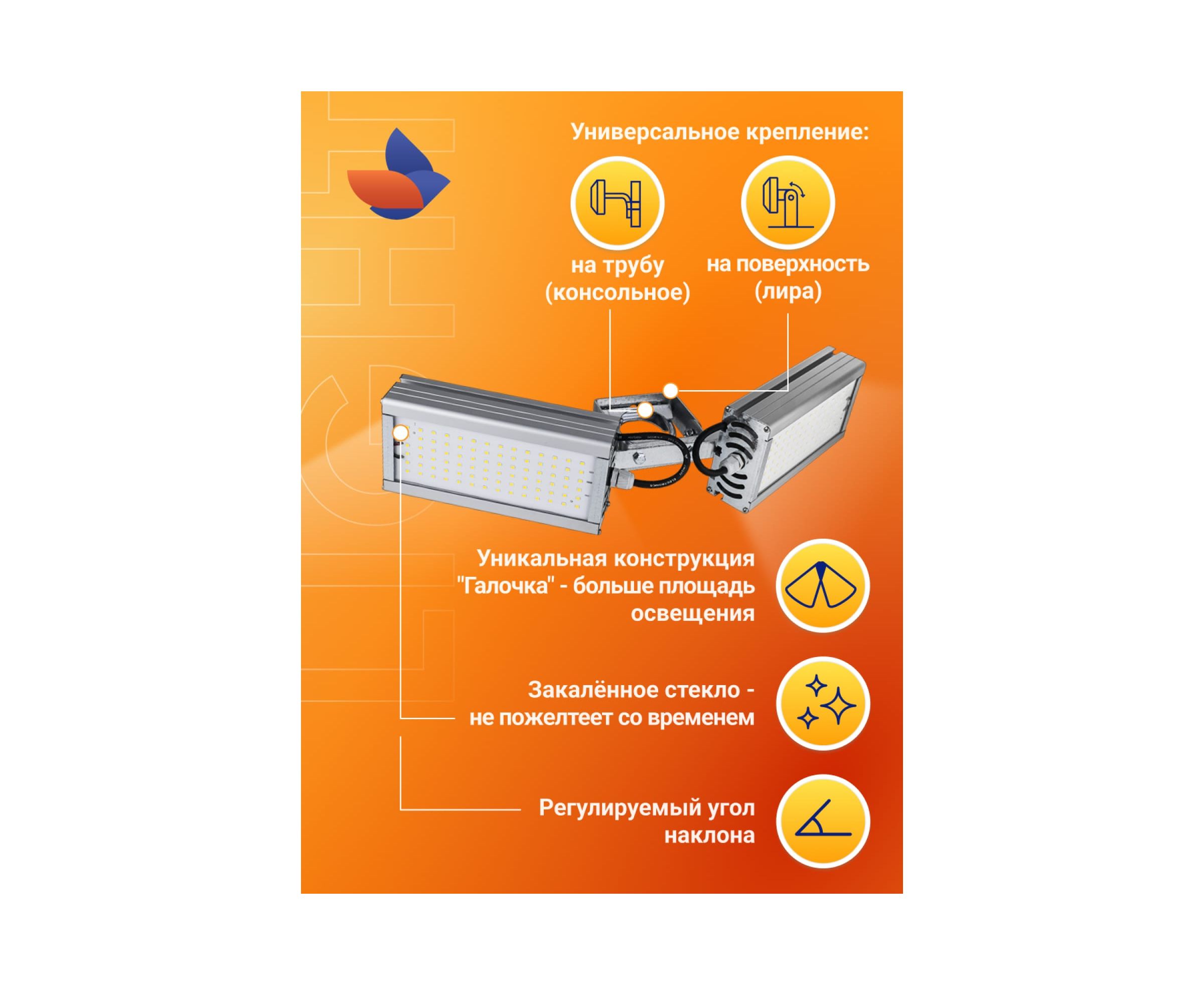 Светильник обладает высокой пылевлагозащищенностью (IP67), высоким диапазоном разрешенных температур от -60 до +50°C, что даёт возможность использовать «Модуль Галочка», как для наружного, так и для внутреннего освещения. Светильник имеет универсальный тип крепления и устанавливается на трубу диаметром до 52мм. Рабочая высота установки светильника 5-8 метров.