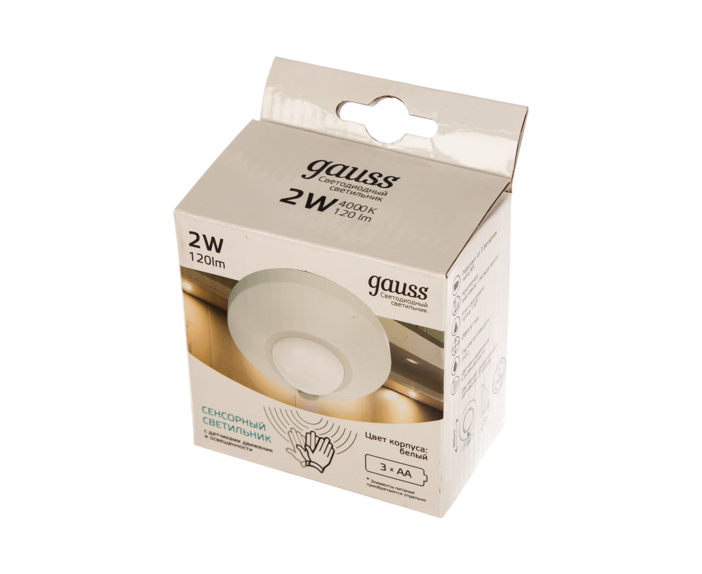 Многофункциональный автономный сенсорный светильник Gauss 2W CL001 рекомендуется для установки в качестве дополнительного или дежурного источника света. Светильник работает от 3х батареек АА-типа (не входят в комплект поставки).
