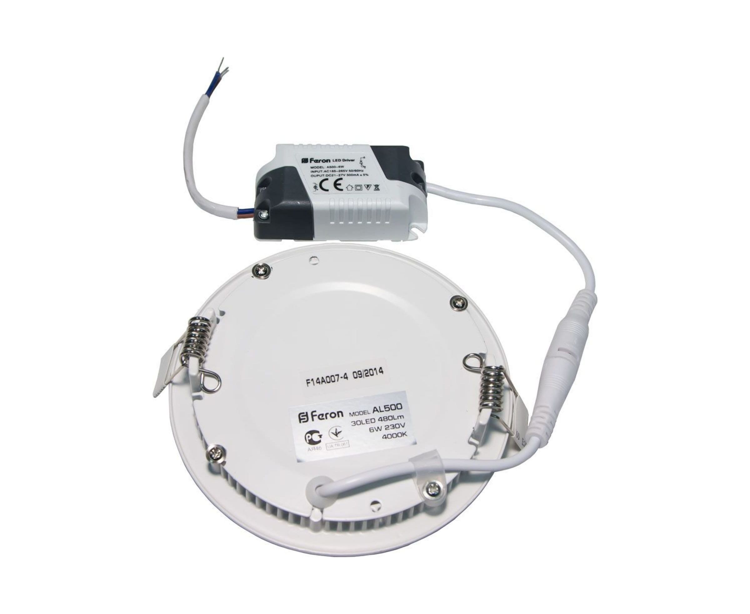 Светодиодный встраиваемый светильник FERON AL500, 6W, 4000K,480Lm, белый 28500