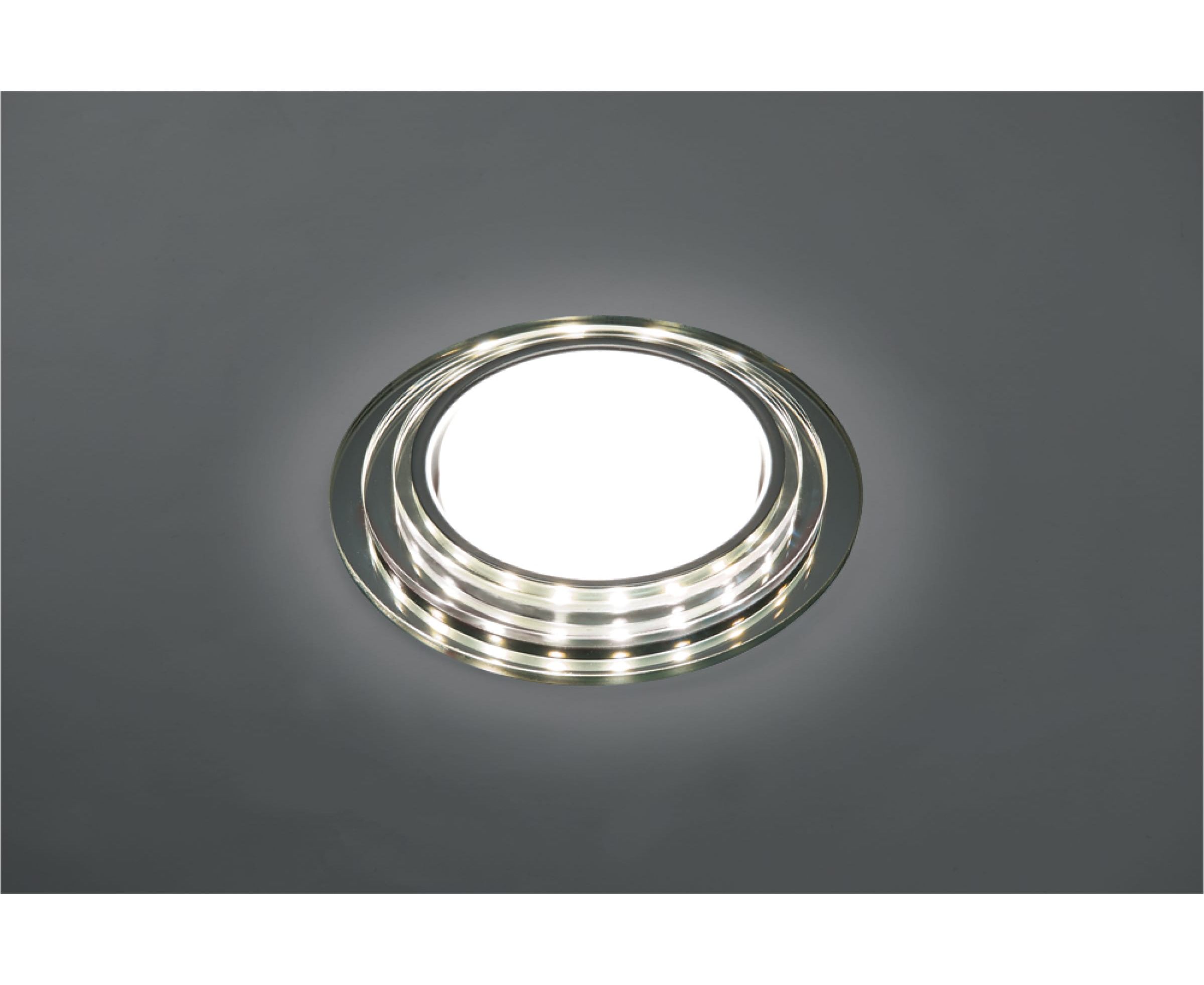 Встраиваемый светильник для натяжных потолков с белой LED подсветкой Feron CD5024 GX53, матовый, 40524 современный встраиваемый светильник из стекла с зеркальным основанием. Украсит интерьер и предоставит возможность дополнительной подсветки помещения. Ступенчатый корпус светильника подсвечивается встроенной диодной лентой изнутри, создавая эффект объёма. Цвет свечения подсветки 4000К (естественный белый свет).