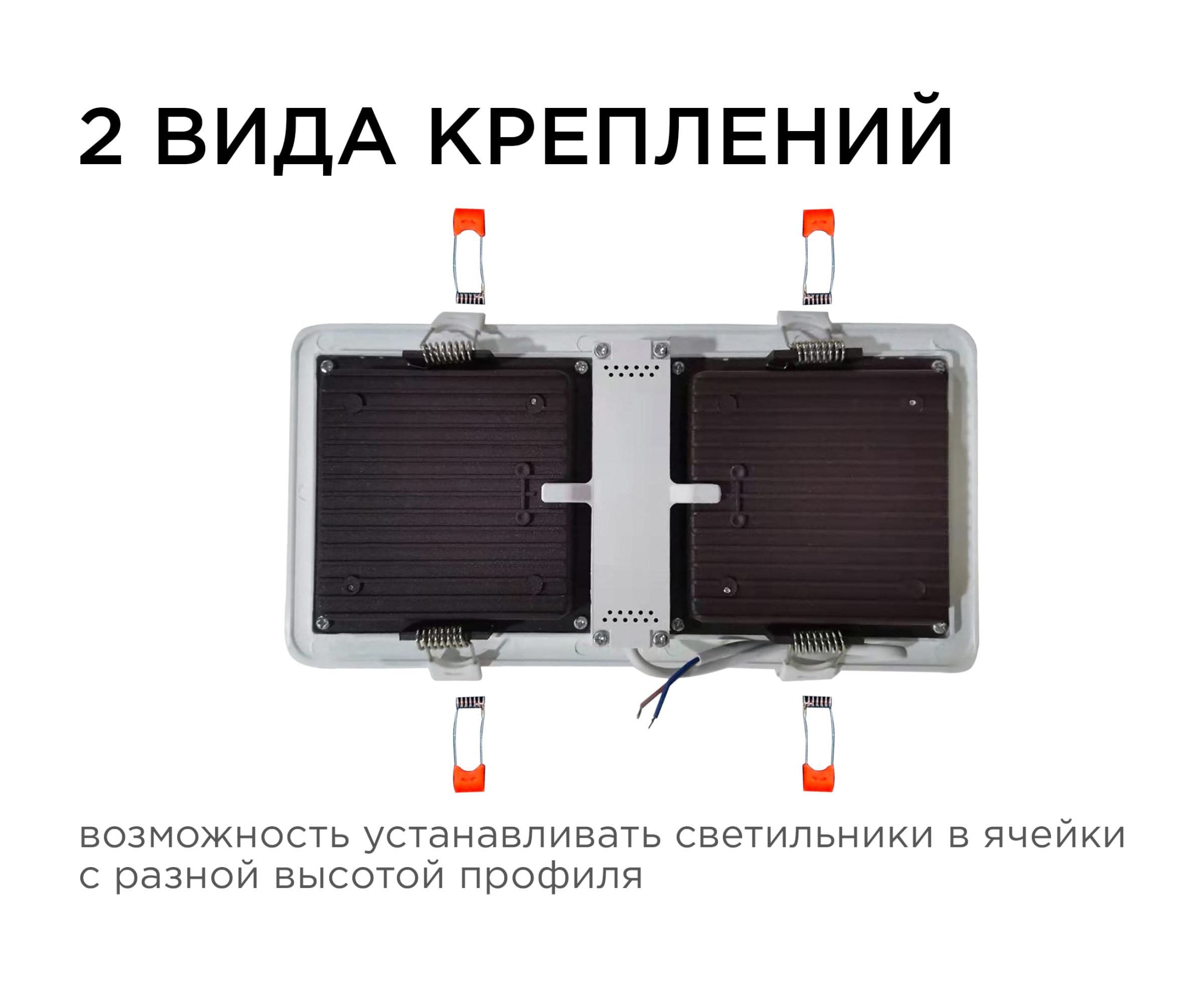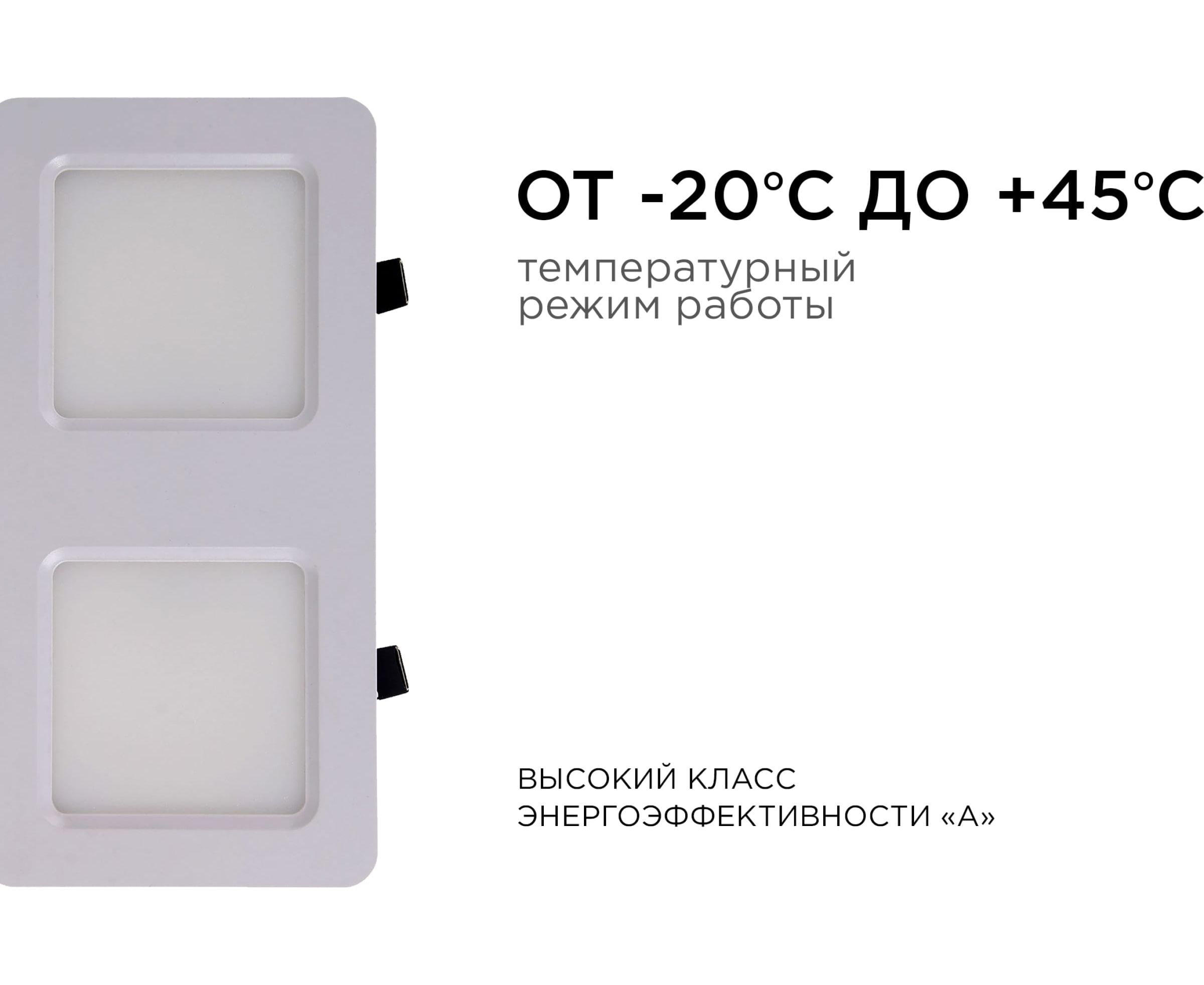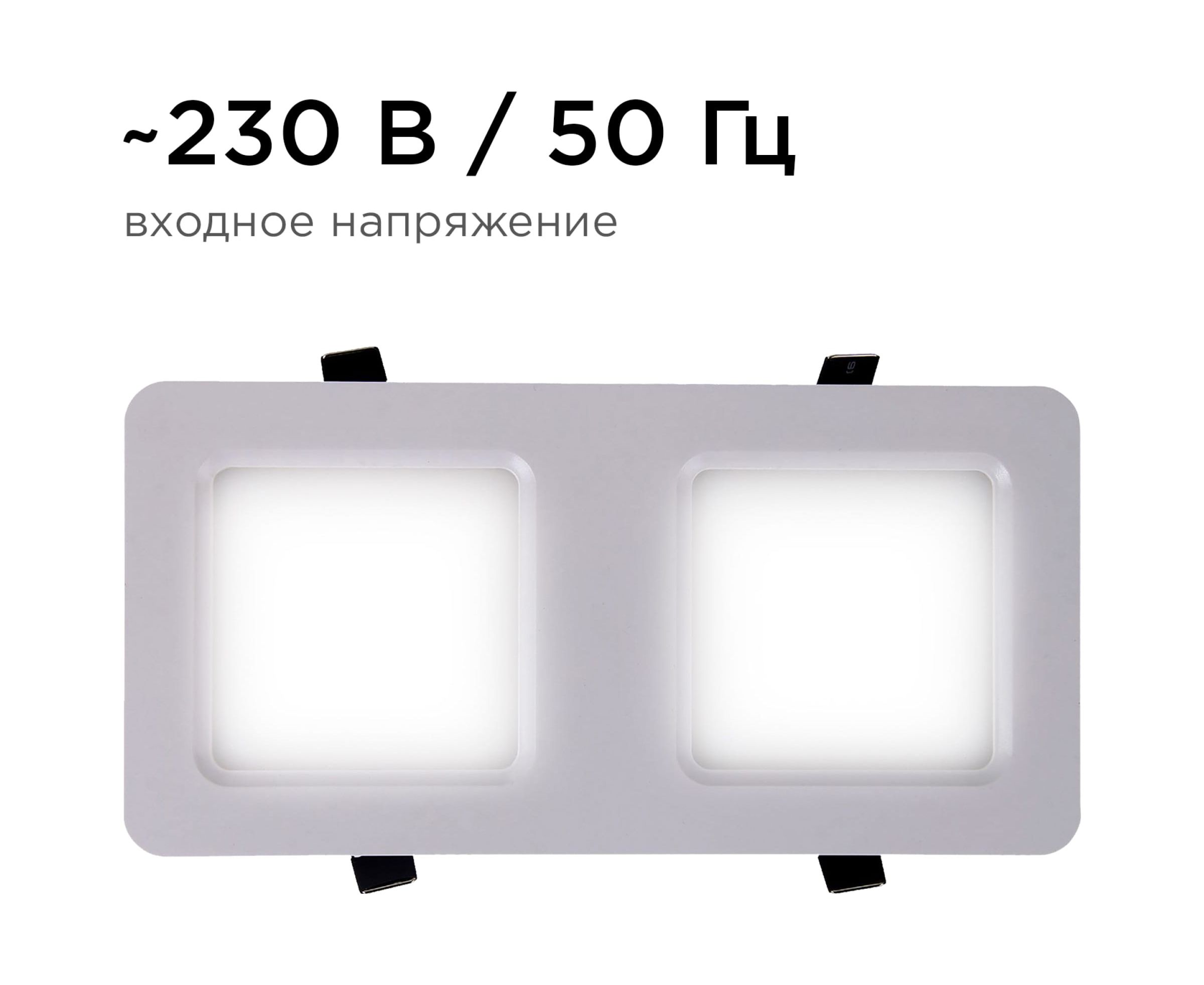 Устанавливается с помощью пружинных держателей, идущих в комплекте. Изделие также укомплектовано встроенным драйвером. Работает от сети 220 В.