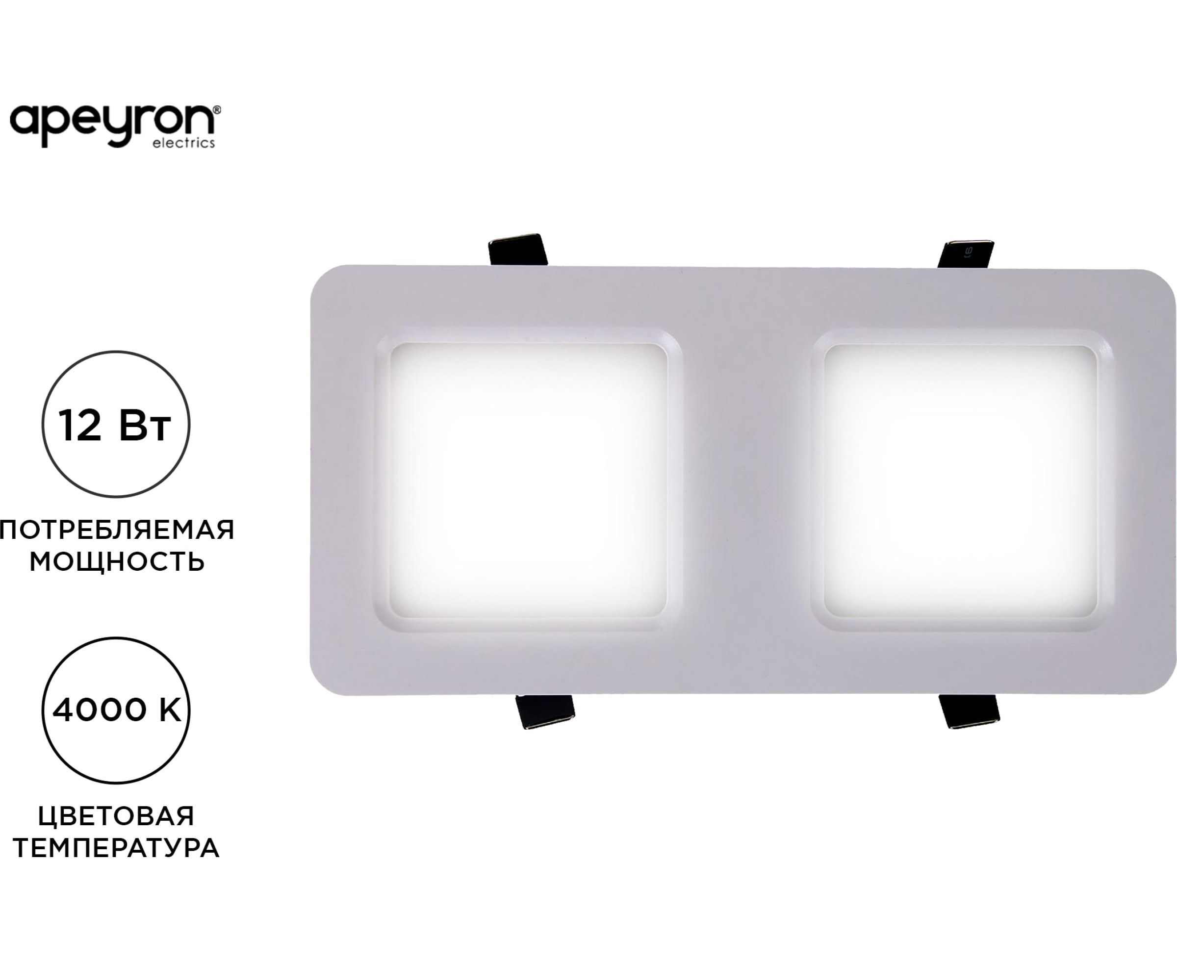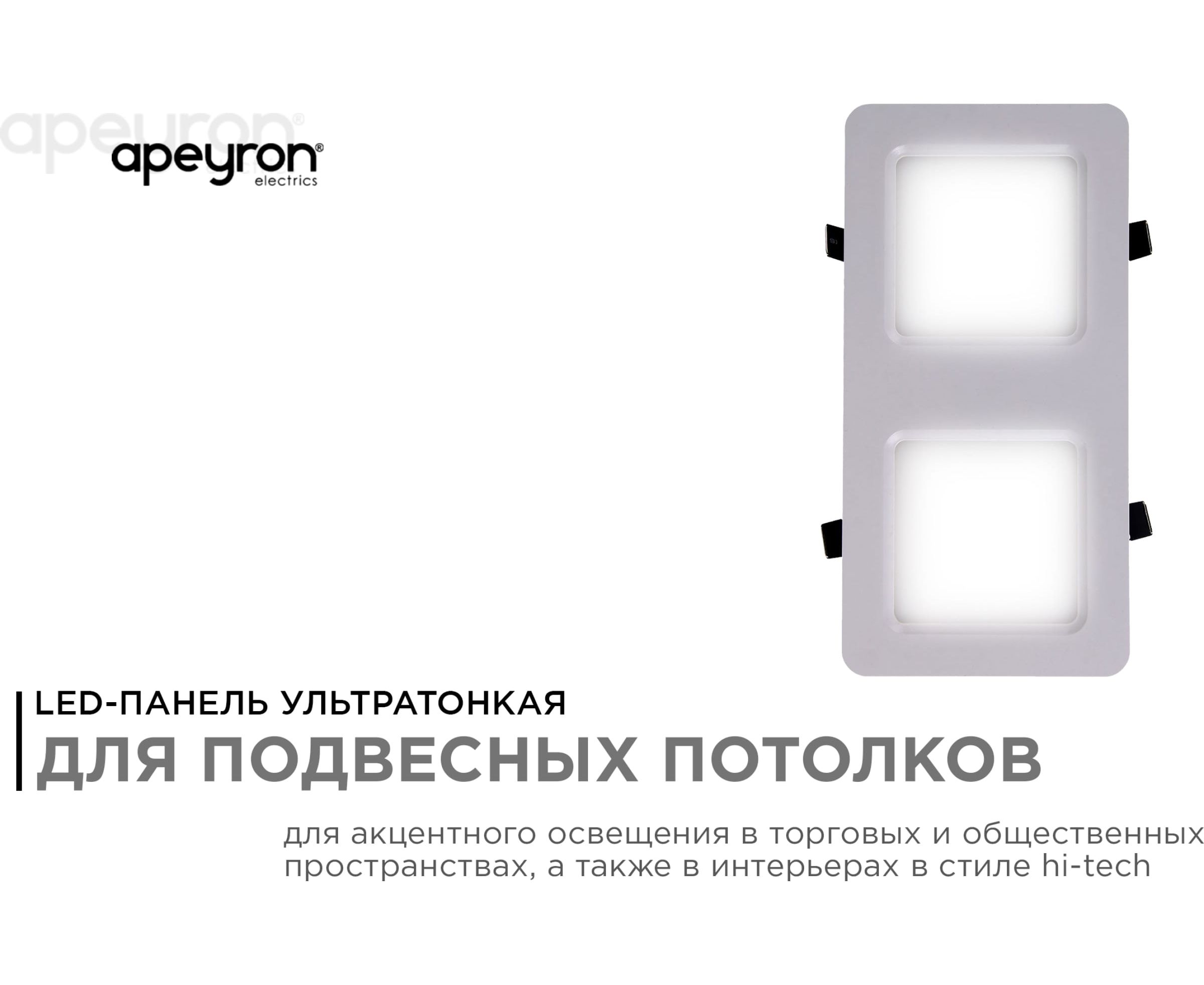 Светодиодный встраиваемый светильник Apeyron Грильято, 12Вт, 1200Лм, 4000К, 100х200х27мм. 42-013