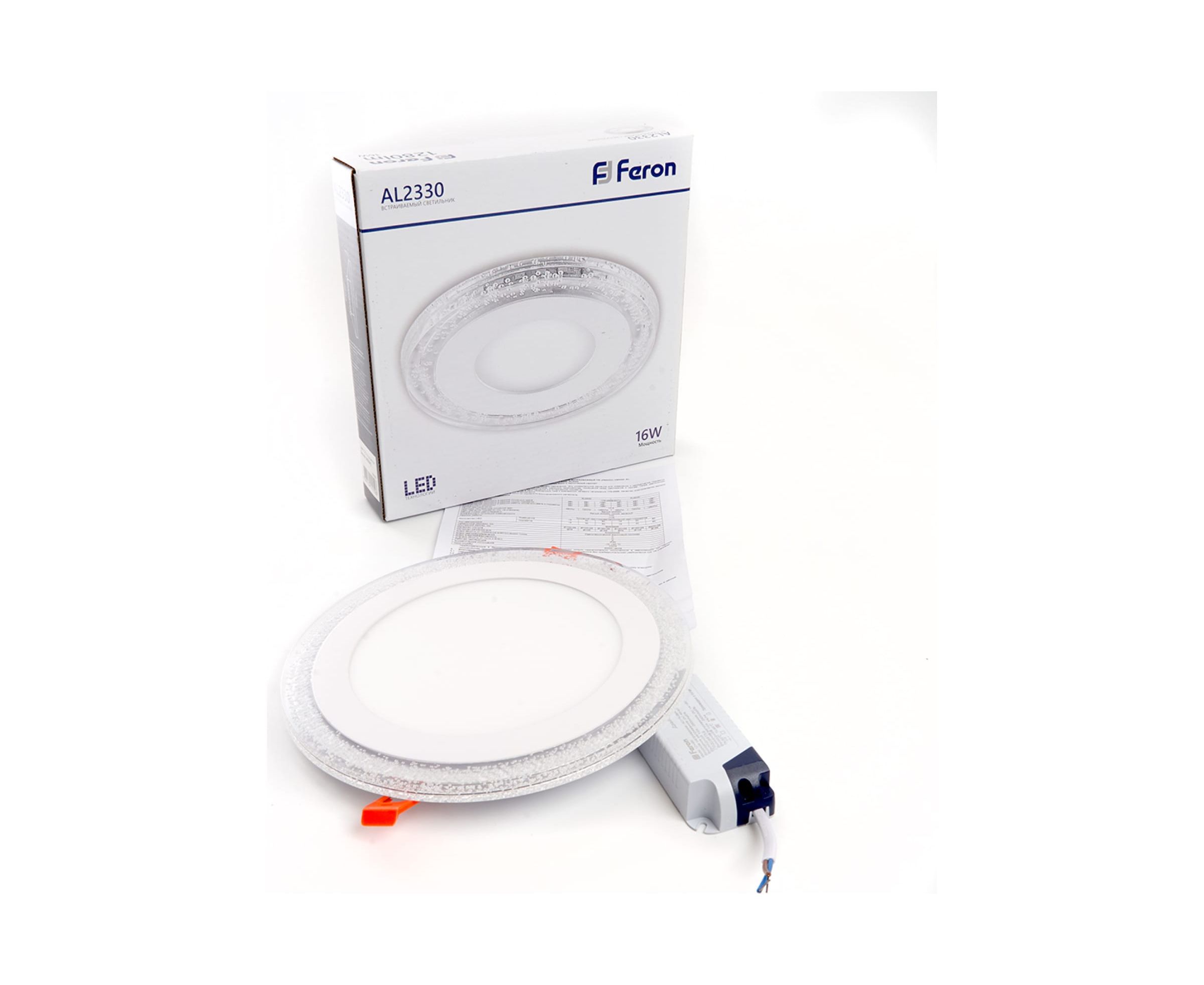 Встраиваемый светильник FERON светодиод 16W, 1280 Lm, 4000К и подсветка 4000К, белый, AL2330 29590