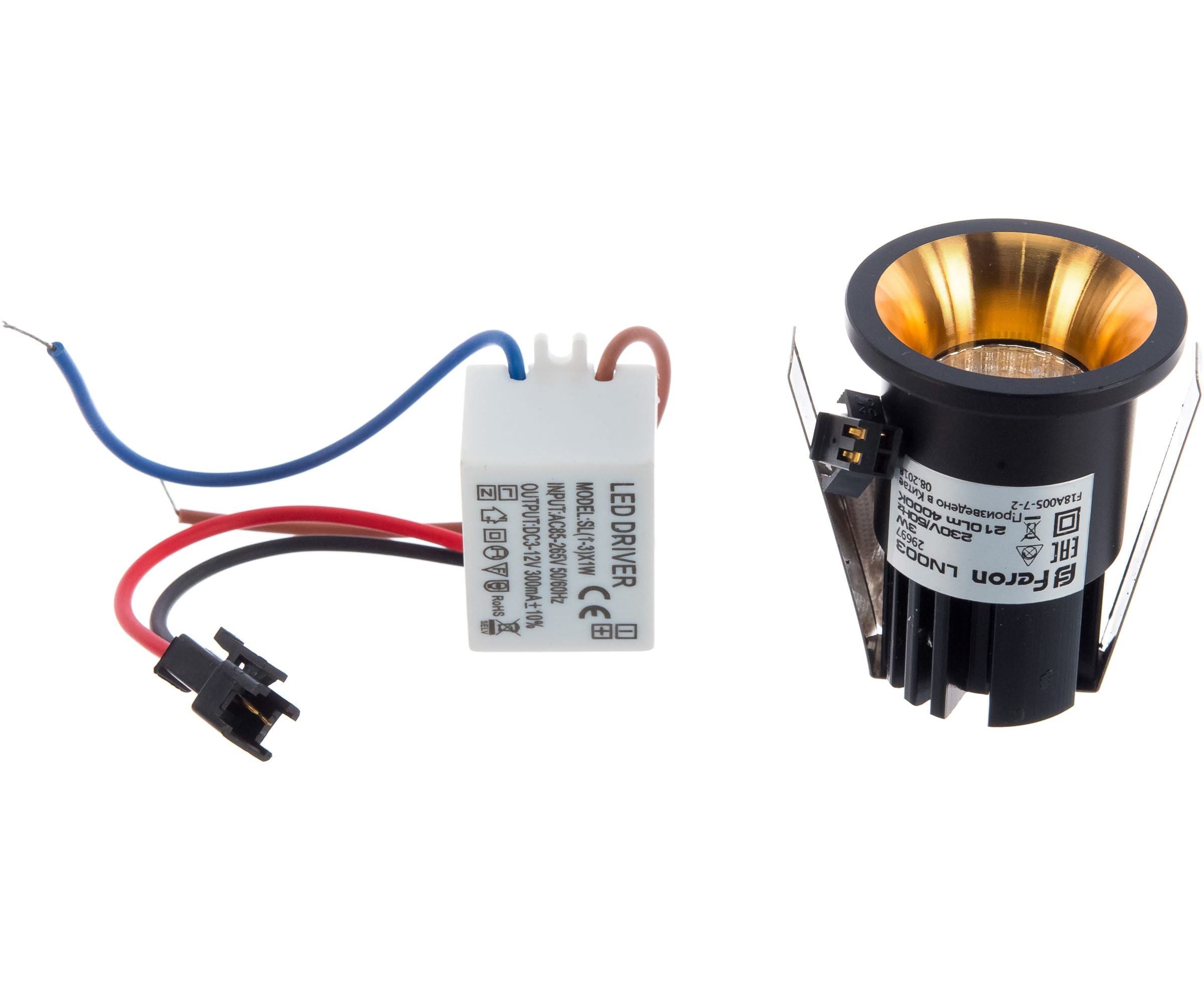 Встраиваемый светильник FERON светодиод 3W, 210Lm, 4000К, черный, золото, LN003 29697