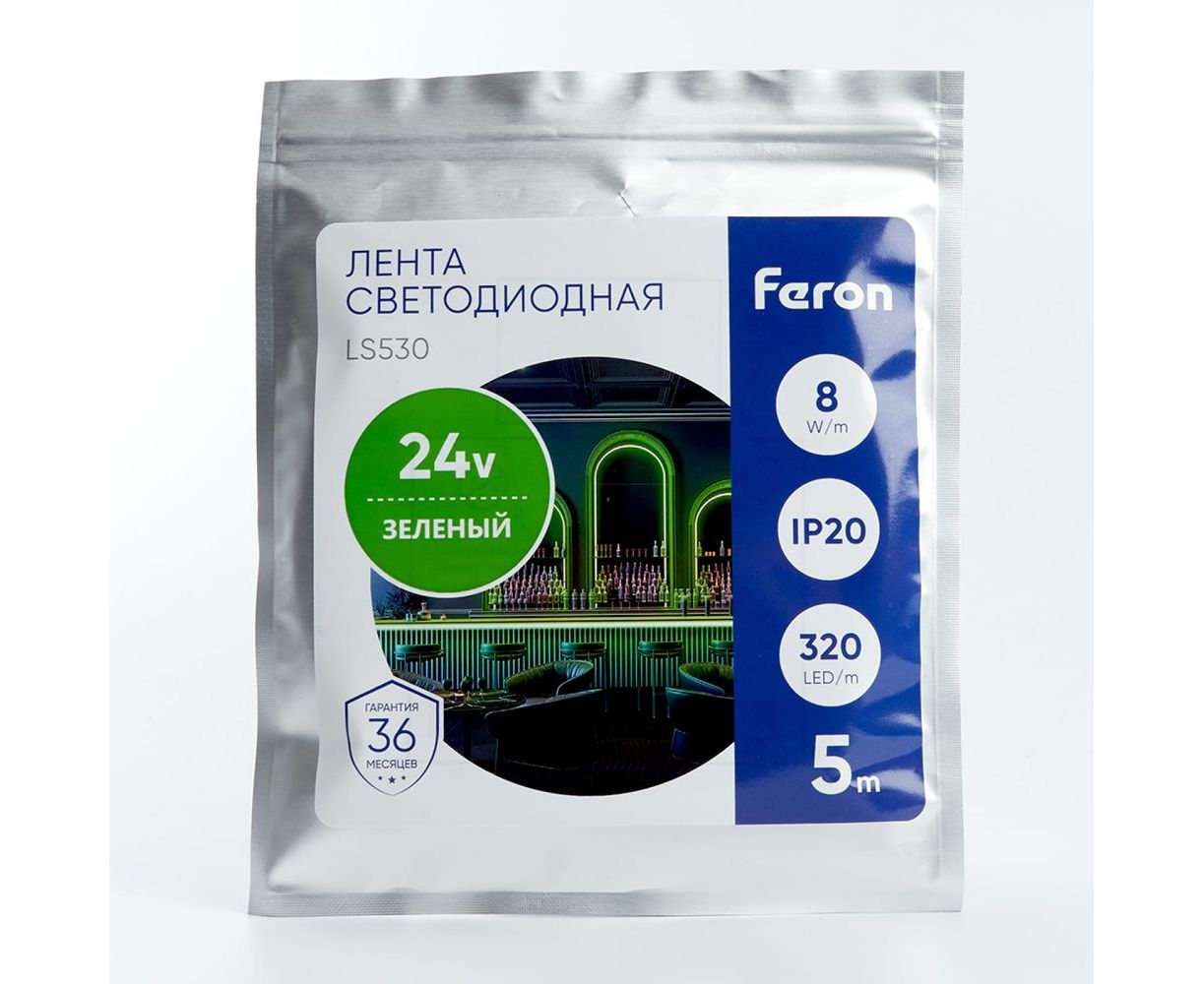 Светодиодная LED лента FERON LS530 320SMD(2110) 8Вт/м 24V 5000x8x1.8мм IP20, зеленый, 48268