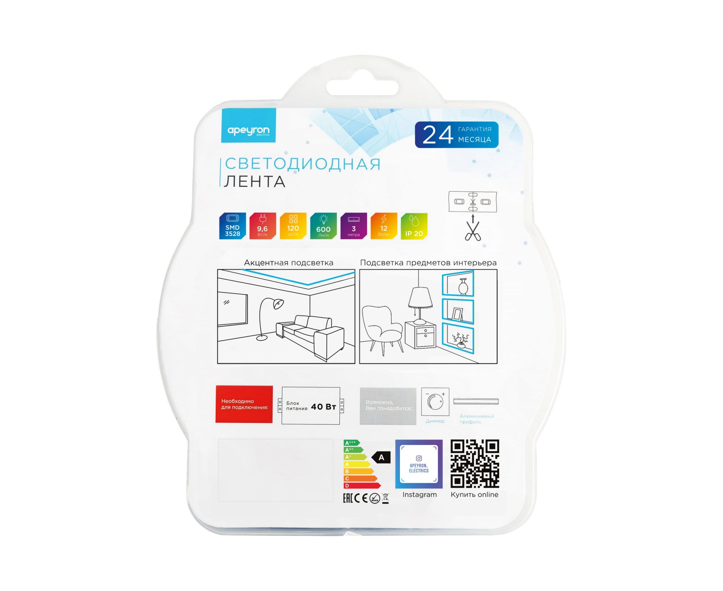 Светодиодная лента APEYRON в блистере 12В, СТ, 9,6Вт/м, smd3528 214BL