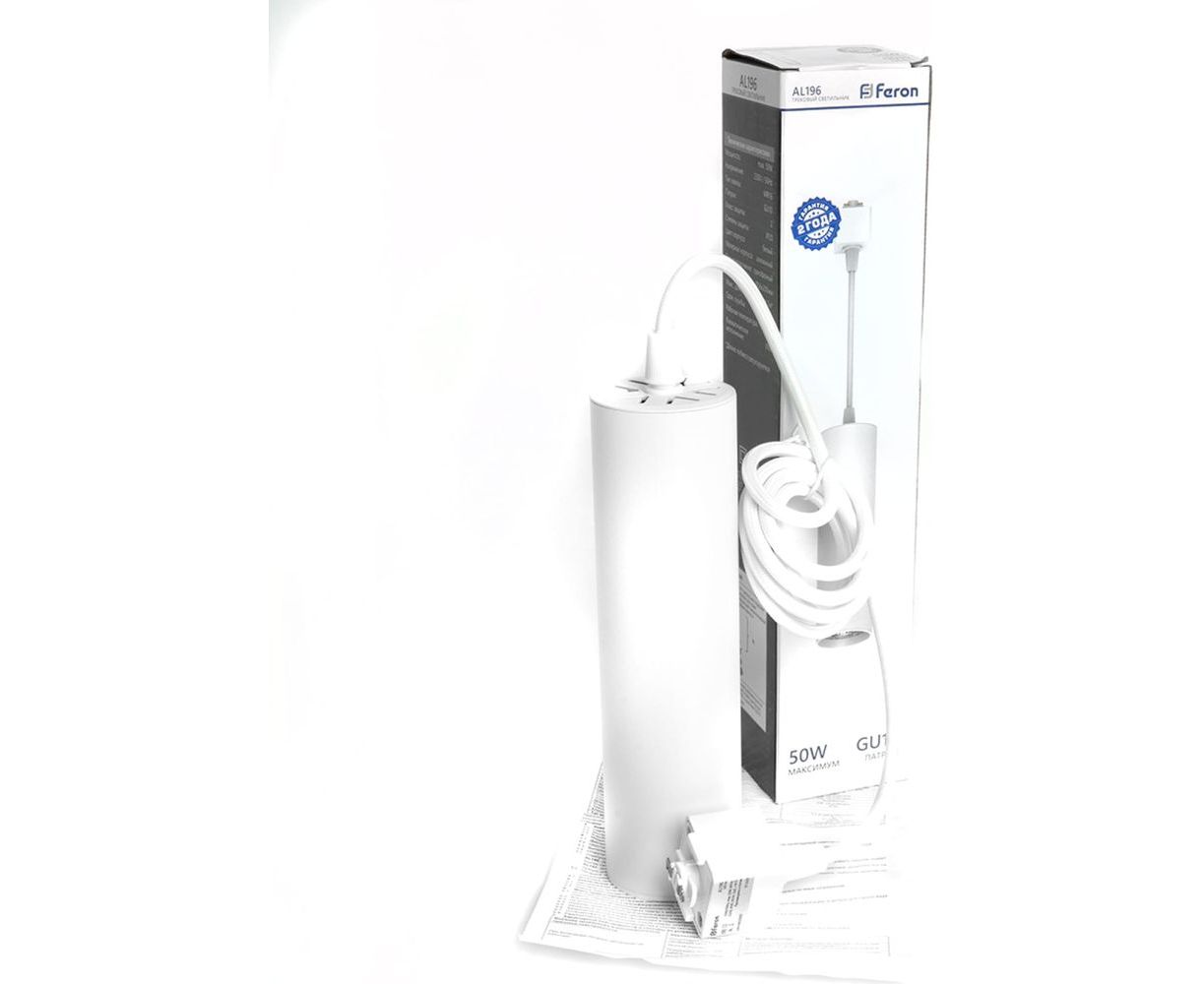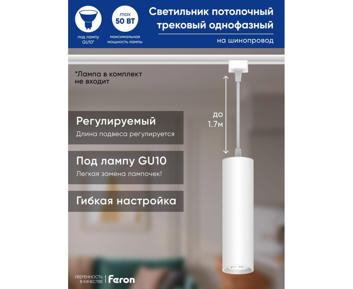 Трековый однофазный светильник на шинопровод FERON al196 на подвесе, под лампу gu10, белый, 48556
