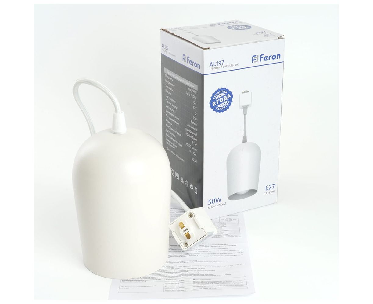 Трековый однофазный светильник на шинопровод FERON al197 на подвесе, под лампу e27, белый, 48554
