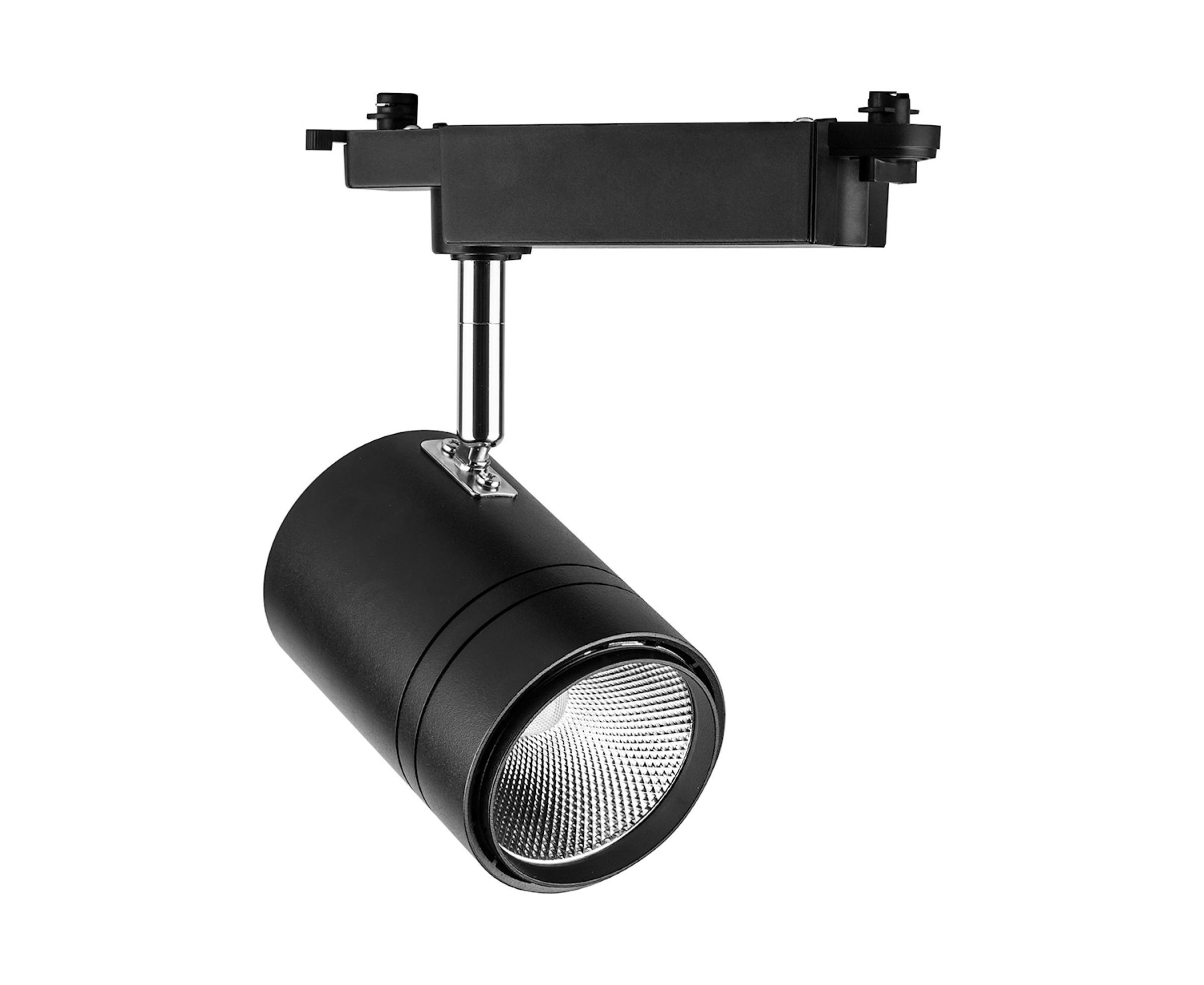 Светильник подключается к однофазному шинопроводу и свободно по нему перемещается. Светодиод оснащен мощностью 50 Вт.