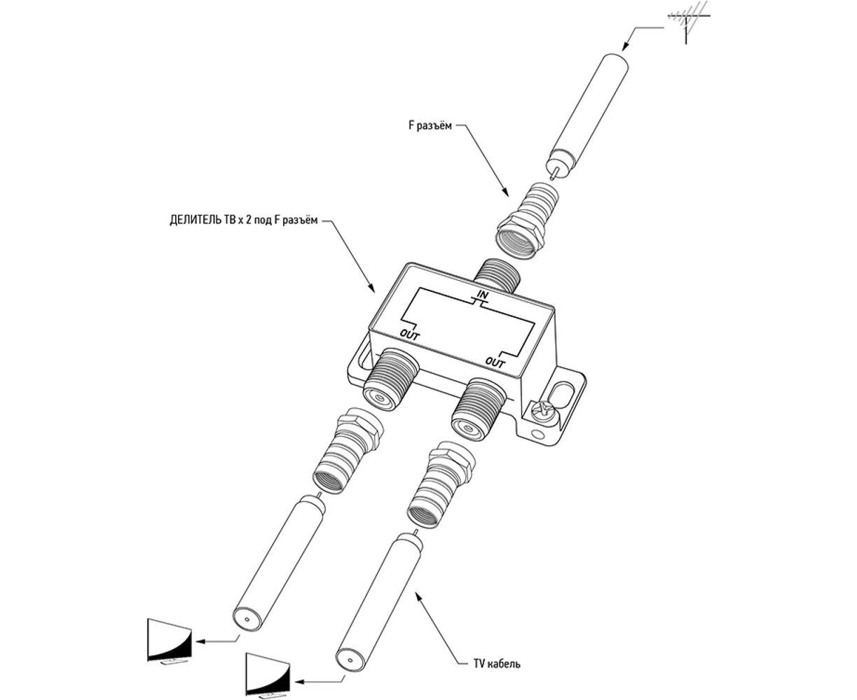 Делитель REXANT ТВ х 2 + 3шт. F BOX 5-1000 МГц Silver 05-6101