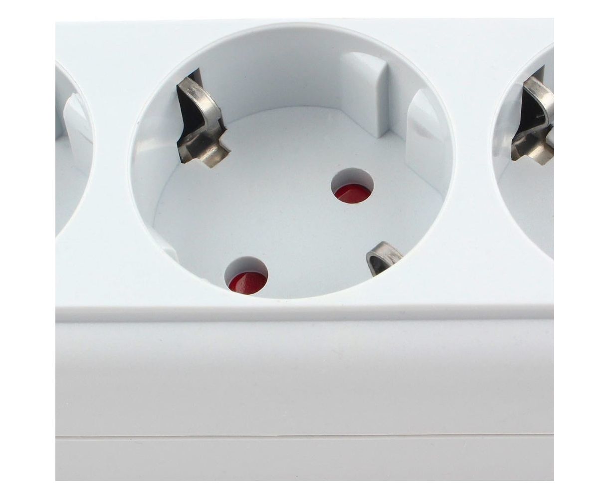 Удлинитель оснащен фильтром для защиты от высокочастотных помех, перегрузок и короткого замыкания. Изделие имеет защитные шторки и двухполюсный выключатель для безопасной эксплуатации.