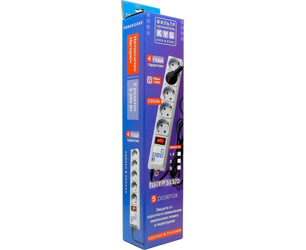 Фильтр-удлинитель B 3м 5роз. серый Power Cube SPG-B-10 является защитным электротехническим устройством "2 в 1". Изделие удлиняет электросоединение между приборами-потребителями и сетью питания 220В, а также защищает от множества негативных факторов, приводящих к сокращению срока службы дорогостоящих устройств. Сетевой фильтр подходит для всех видов бытовой, офисной и компьютерной техники.