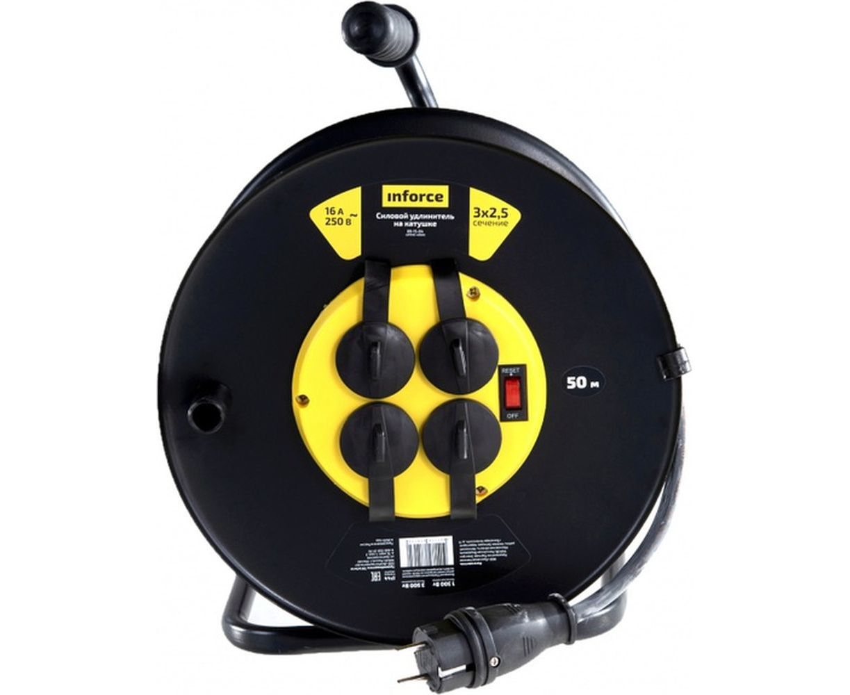 - Катушка удлинителя Inforce 4 гнезда, с/з КГт 3х2,5 16A 50м IP44 09-15-04 выполнена из первичного полипропилена.
