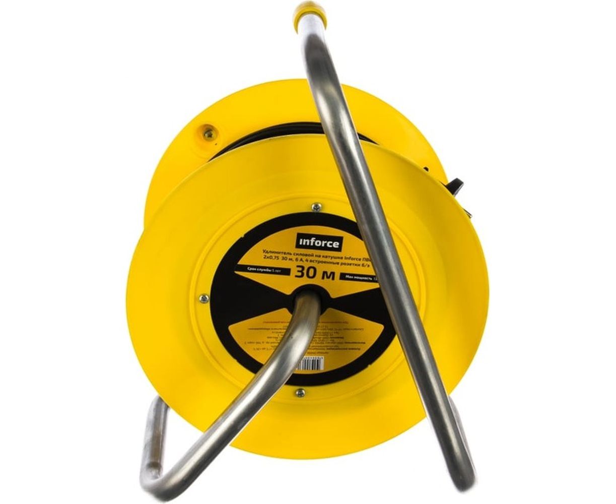 - Барабан силового удлинителя на катушке Inforce К4-О-30 ПВС 2x0.75 30м, 6А, 4 встр. розетки б/з 24030 изготовлен из пластика;