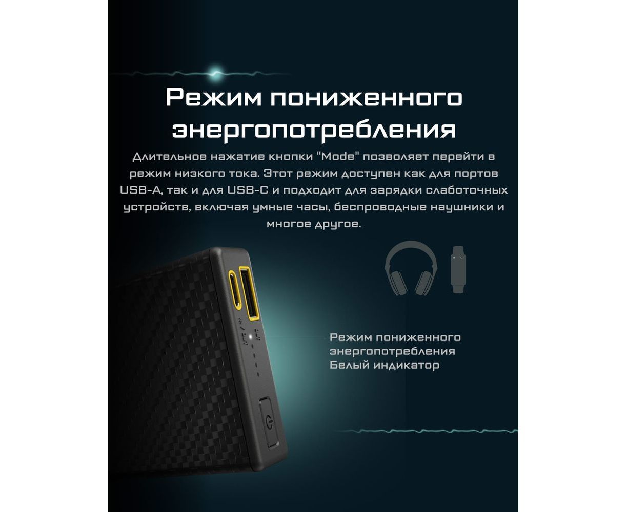 CARBO 20000 автоматически перейдет в режим гибернации, если какое-то время будет отсутствовать процесс зарядки или разрядки.