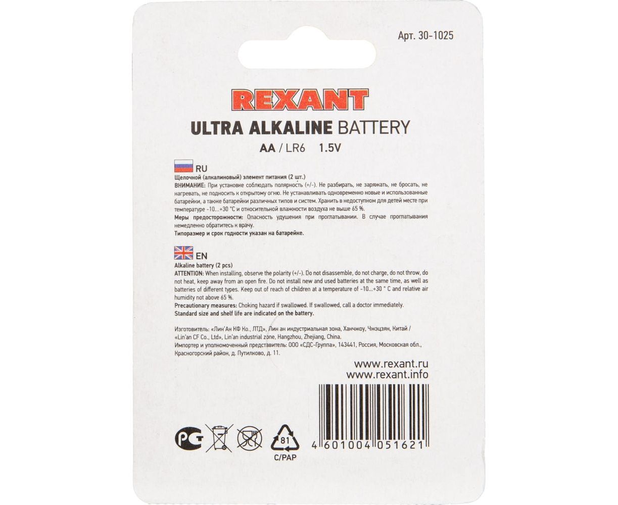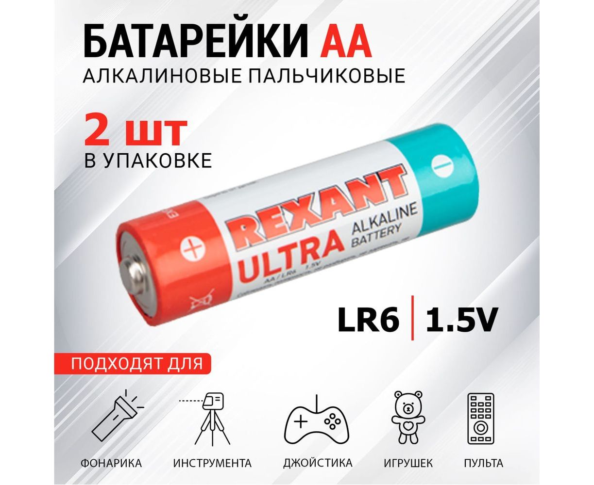 Ультра алкалиновая батарейка REXANT AA, LR6 2 шт 30-1025