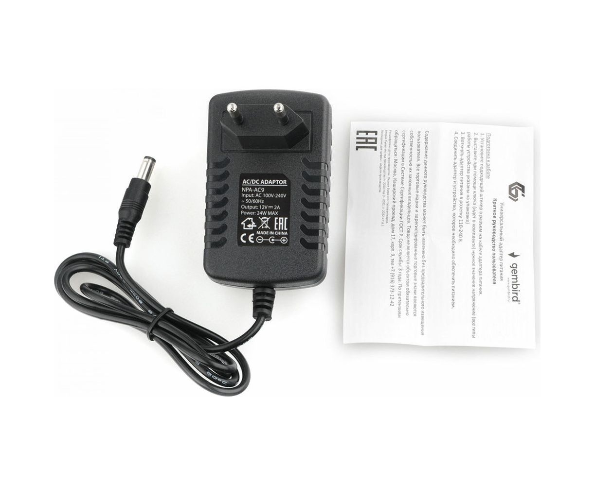Адаптер питания Gembird 12В/2А, 1 штекер 5,5x2,5мм, NPA-AC9 для различных устройств (тонометров, роутеров, TV - BOX, сигнализаций, электробритв, радиоприемников, видеокамер и т.д.).