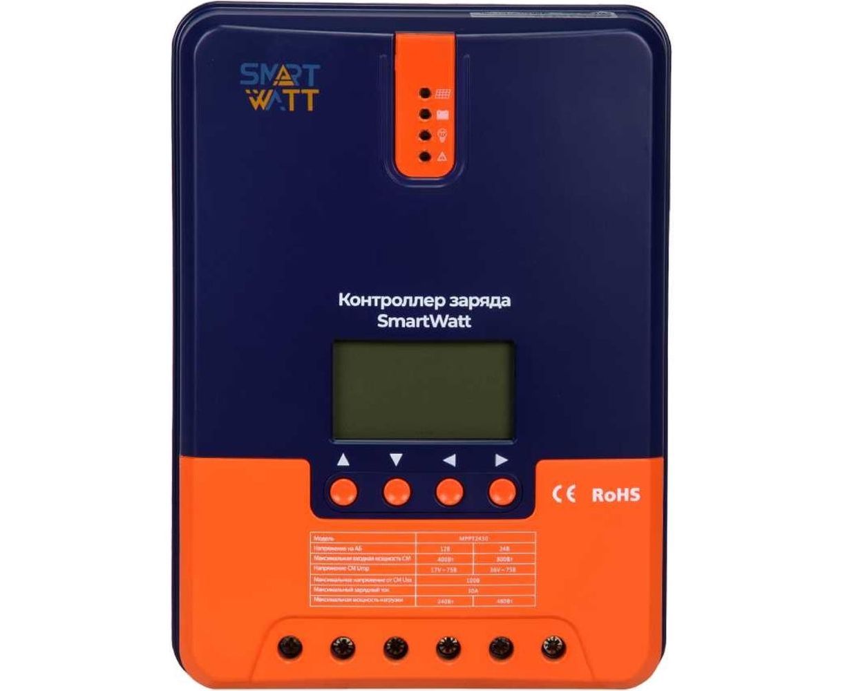 Контроллер заряда SmartWatt MPPT 2430 применяется в солнечных энергосистемах и предназначен для управления процессами заряда и разряда аккумуляторных батарей.