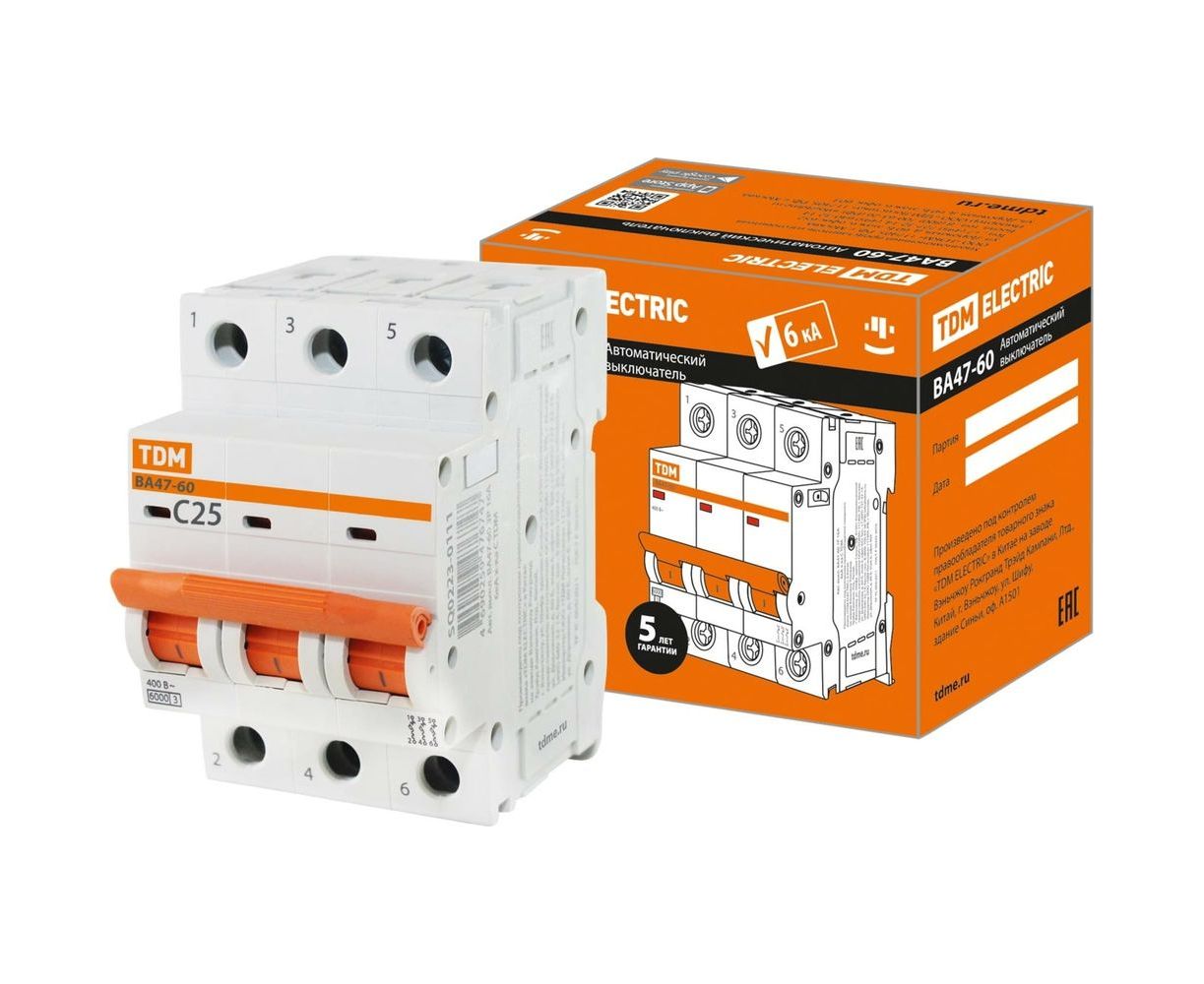 Автоматический выключатель TDM ВА47-60 3Р 25А 6кА характеристика С SQ0223-0111