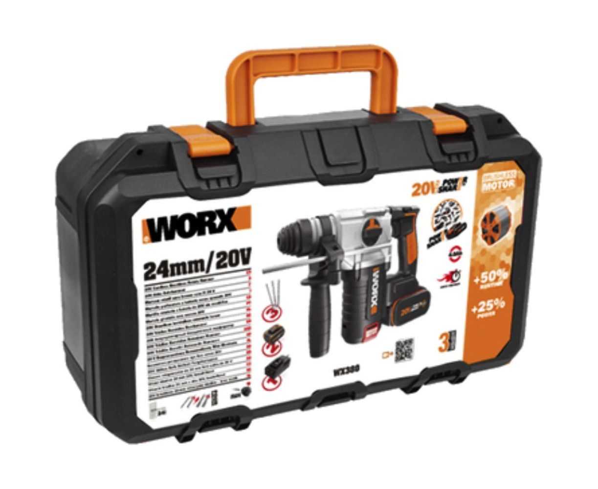Аккумуляторный бесщеточный перфоратор WORX 20В, 4Ач x2, ЗУ 2А, кейс WX380