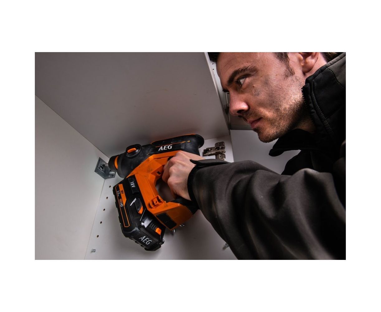 Компактный перфоратор AEG BBH18C-0 4935464984 используется в процессе строительства и ремонта для демонтирования разнообразных материалов и сверления отверстий диаметром до 16 мм.