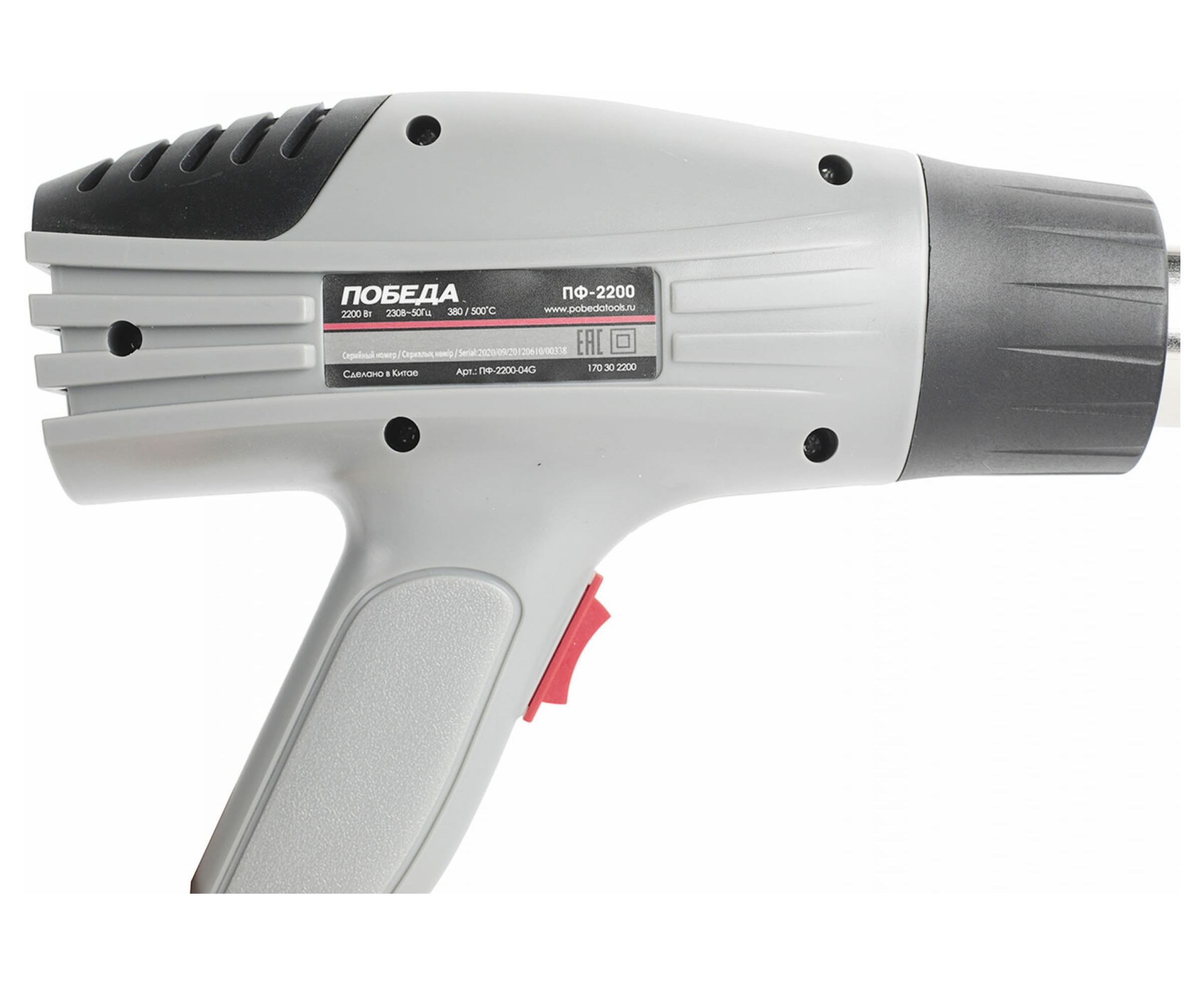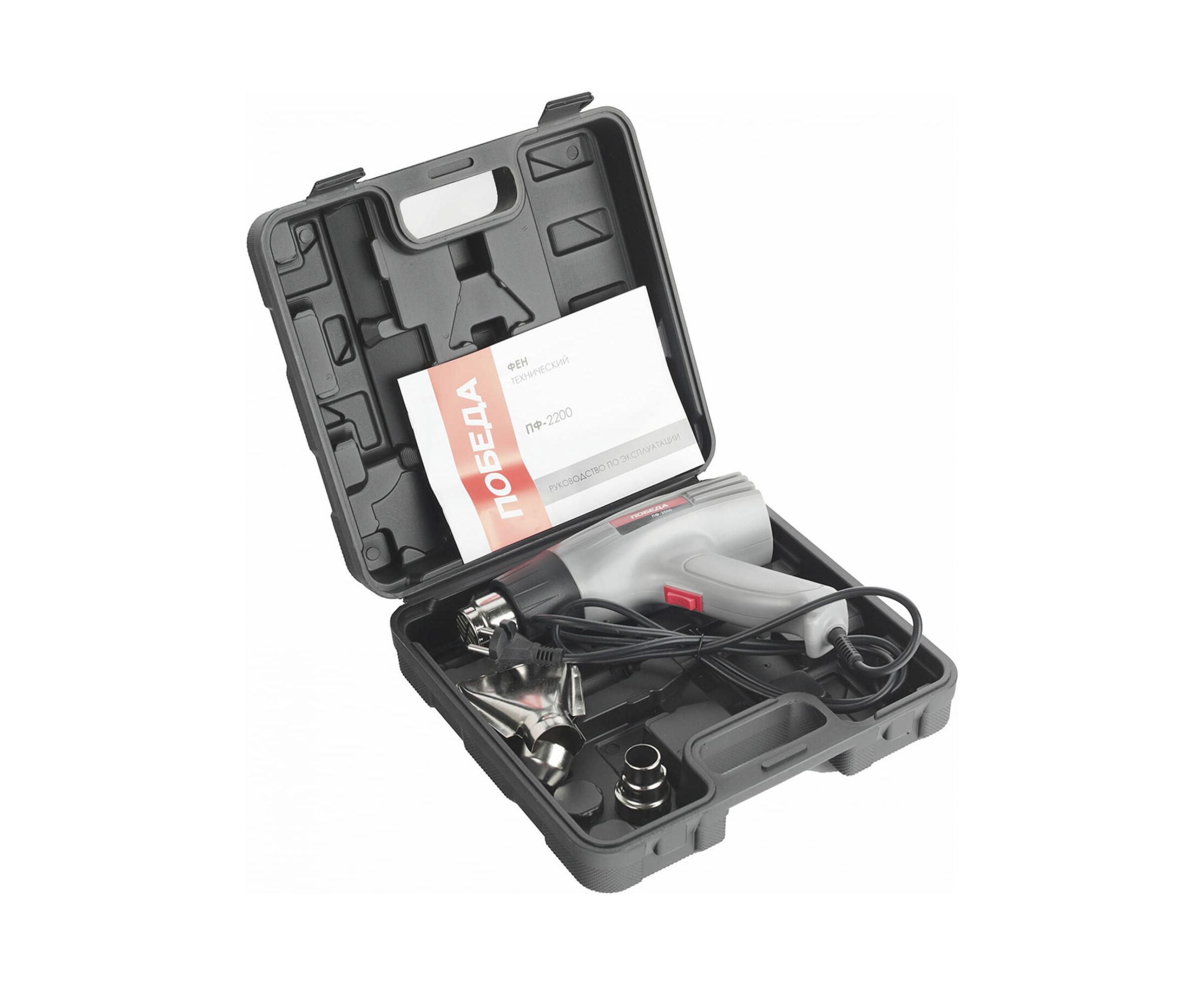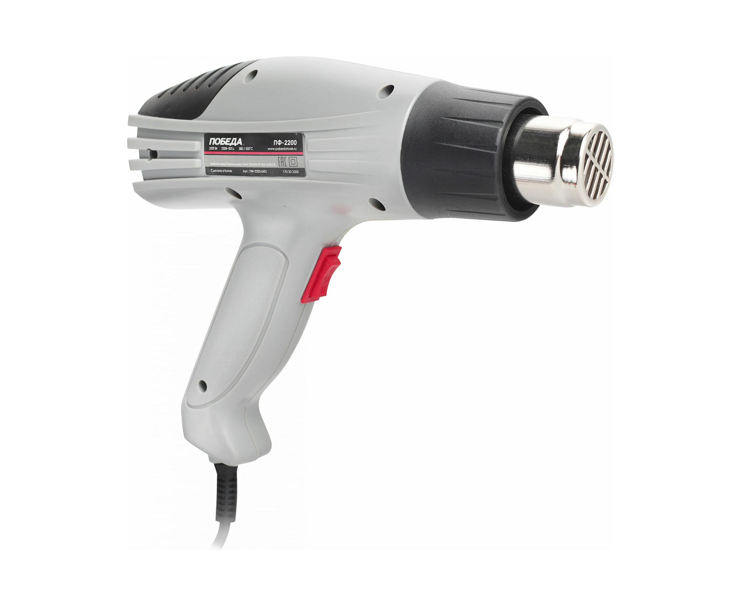 Технический фен Победа ПФ-2200 170302200 используется для прогрева замерзших труб, спаивания пластмасс, удаления красочных покрытий, разделения клеевых соединений.