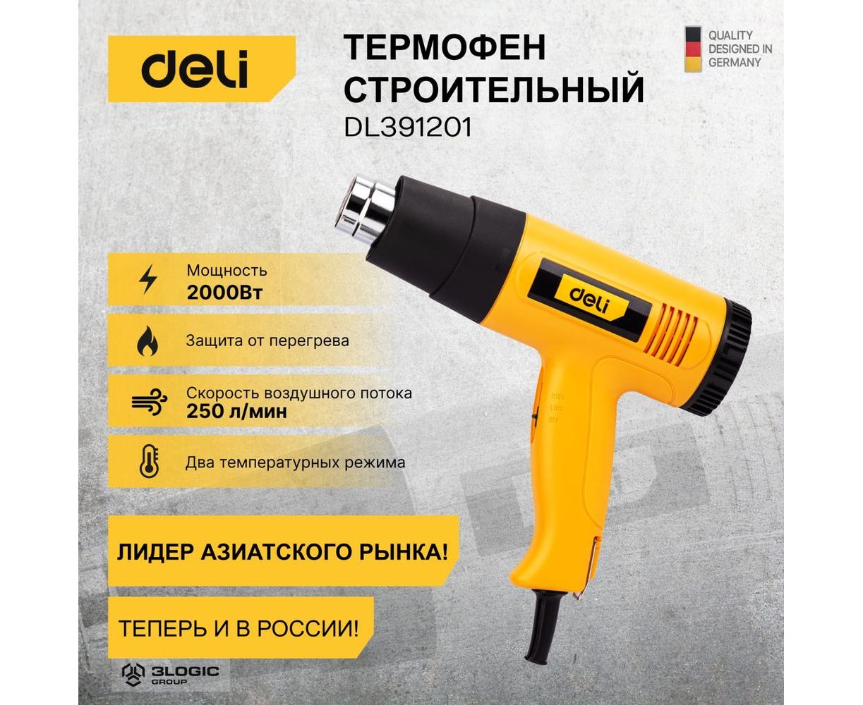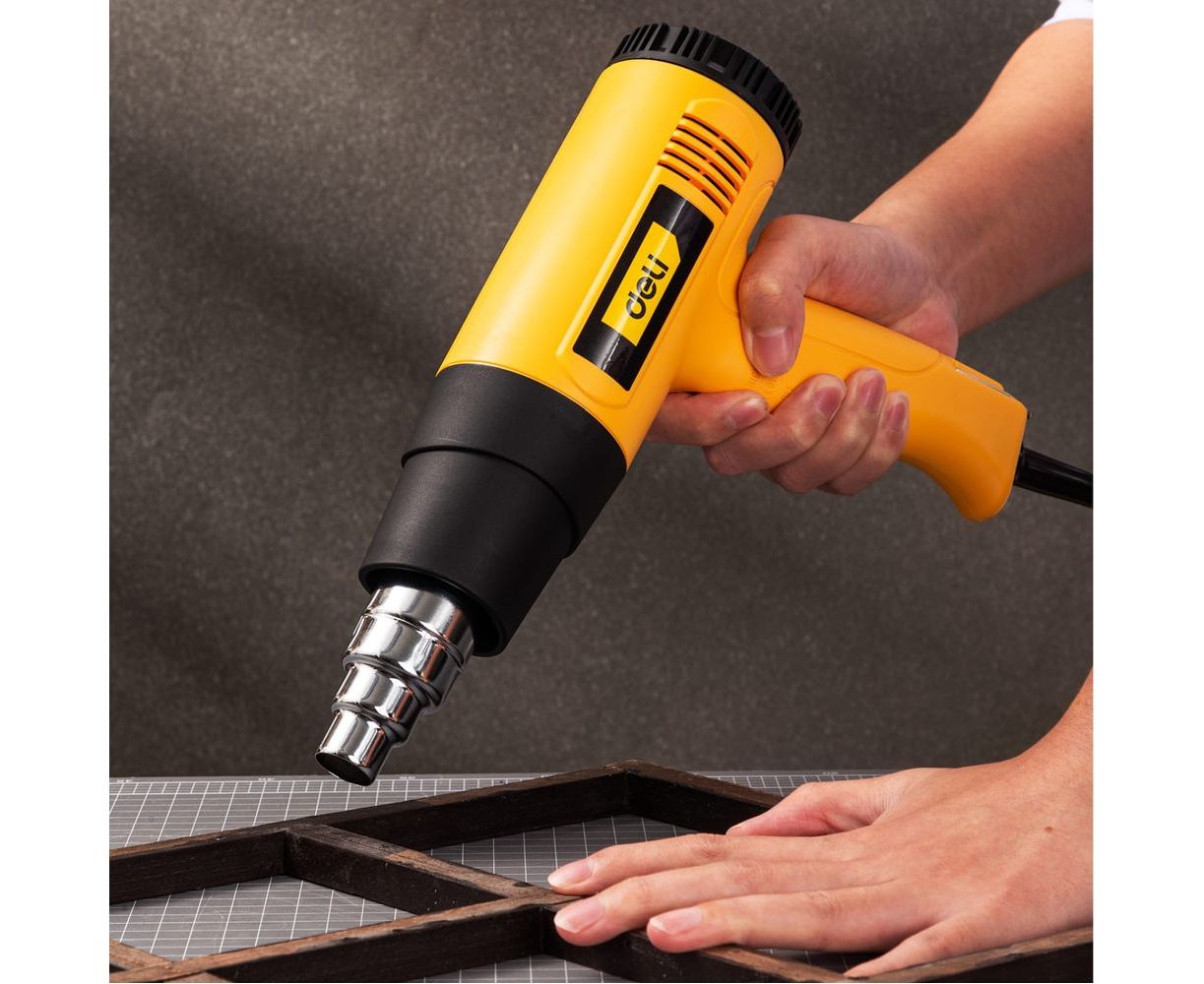 Термопистолет/технический фен DELI DL391201 2000Вт 103016 используется для сушки красок и клея, удаления герметиков, размораживания труб, сдирание старой краски и множества других задач.