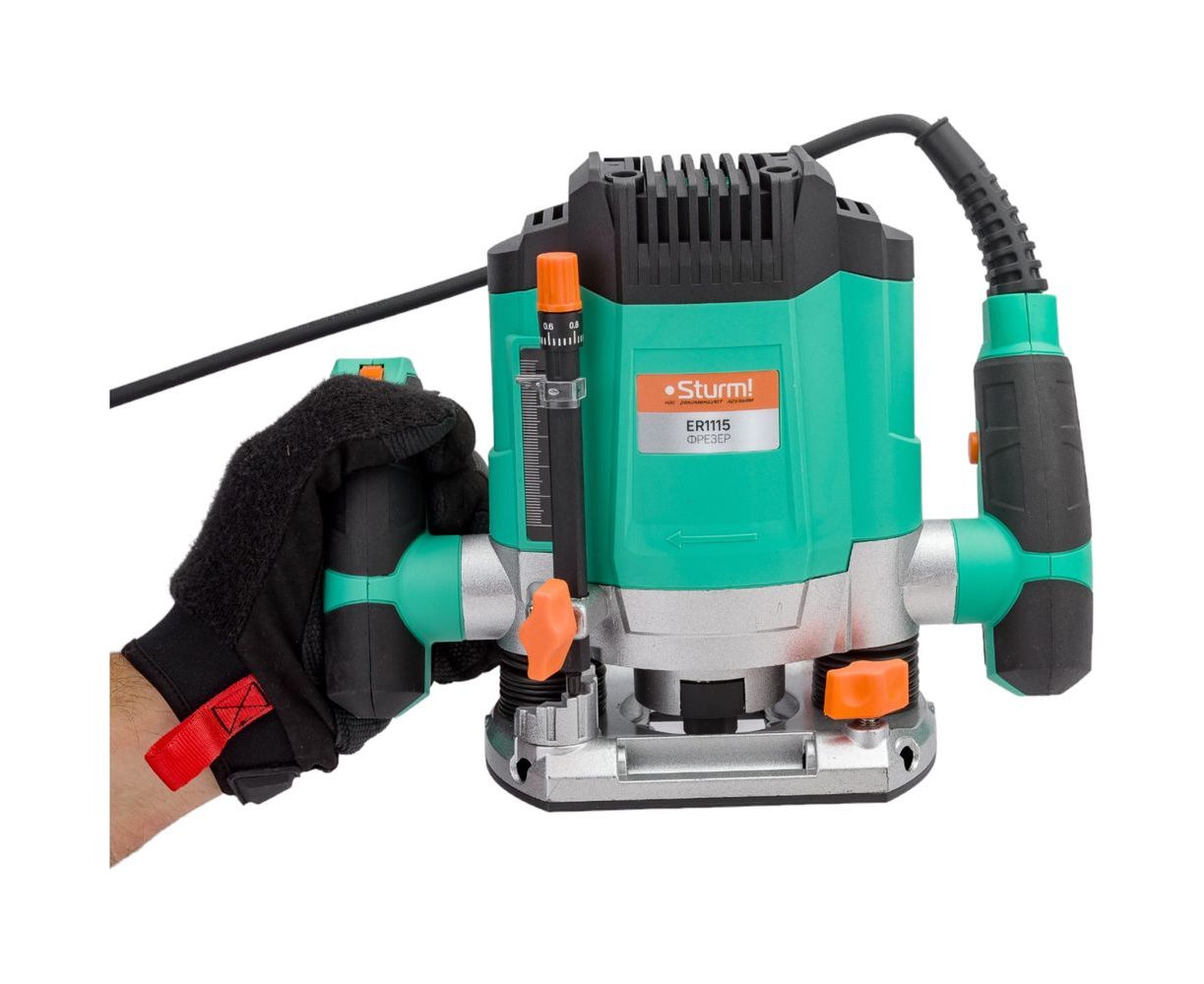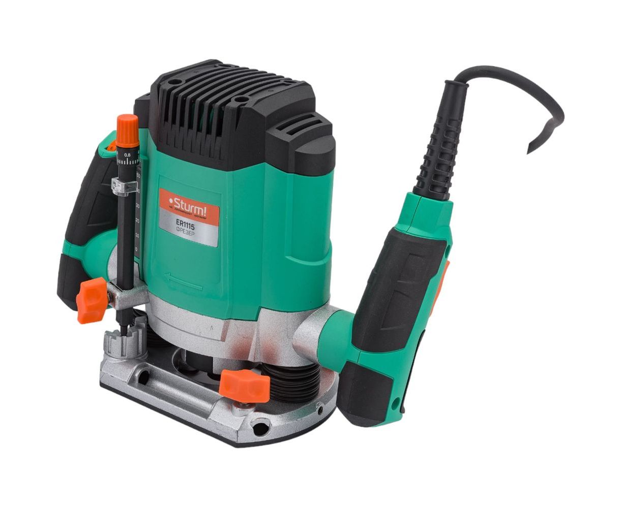 Фрезер Sturm ER1115 – компактный и удобный электроинструмент средней мощности для исполнения пазов, канавок, отверстий, снятия фасок, подгонки краев в древесине и схожих материалах.