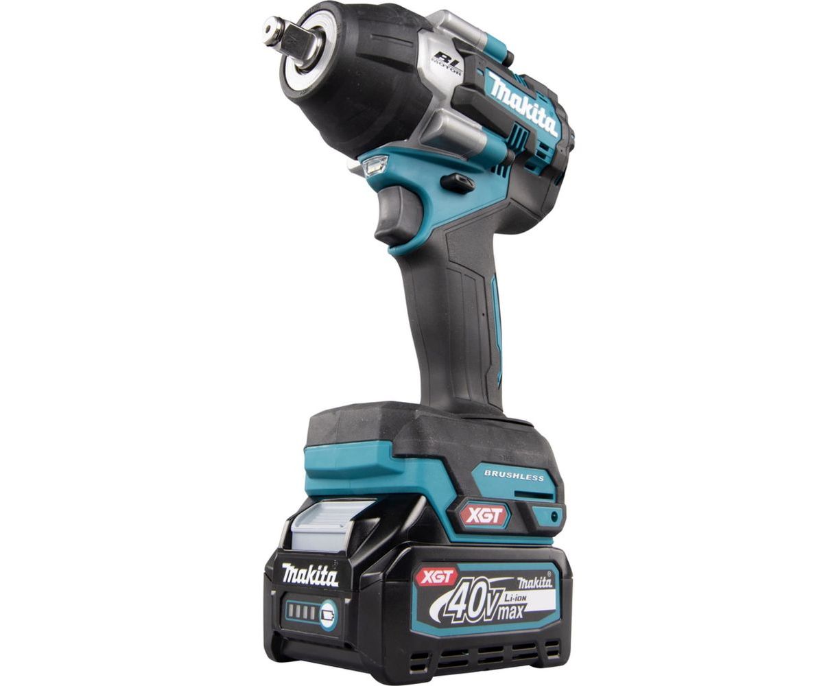 Аккумуляторный ударный гайковерт Makita XGT BL TW007GD201 – мощная модель для работы с крепежом. Оборудована бесщеточным двигателем, поэтому подходит для эксплуатации в тяжелых условиях.