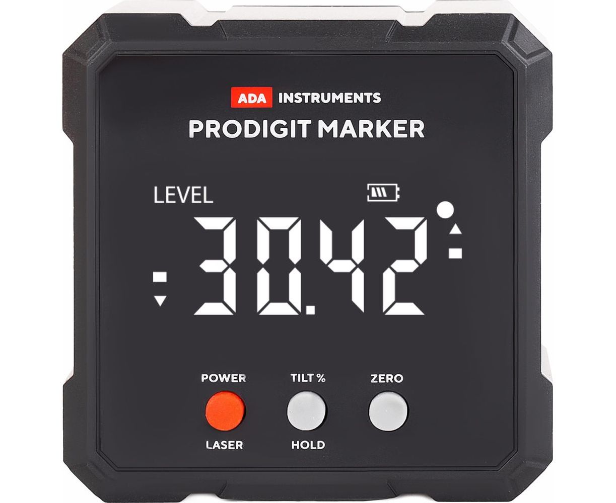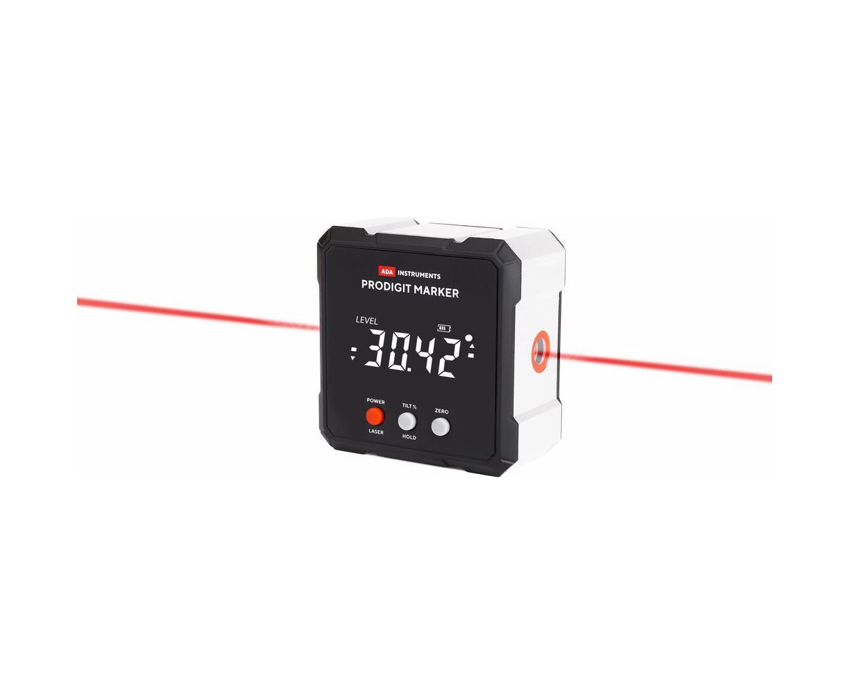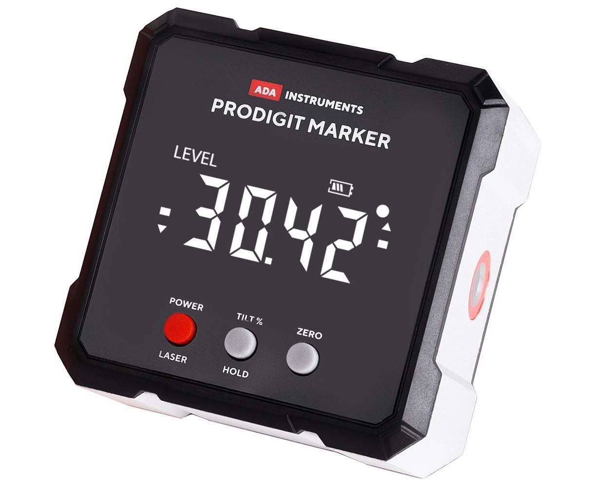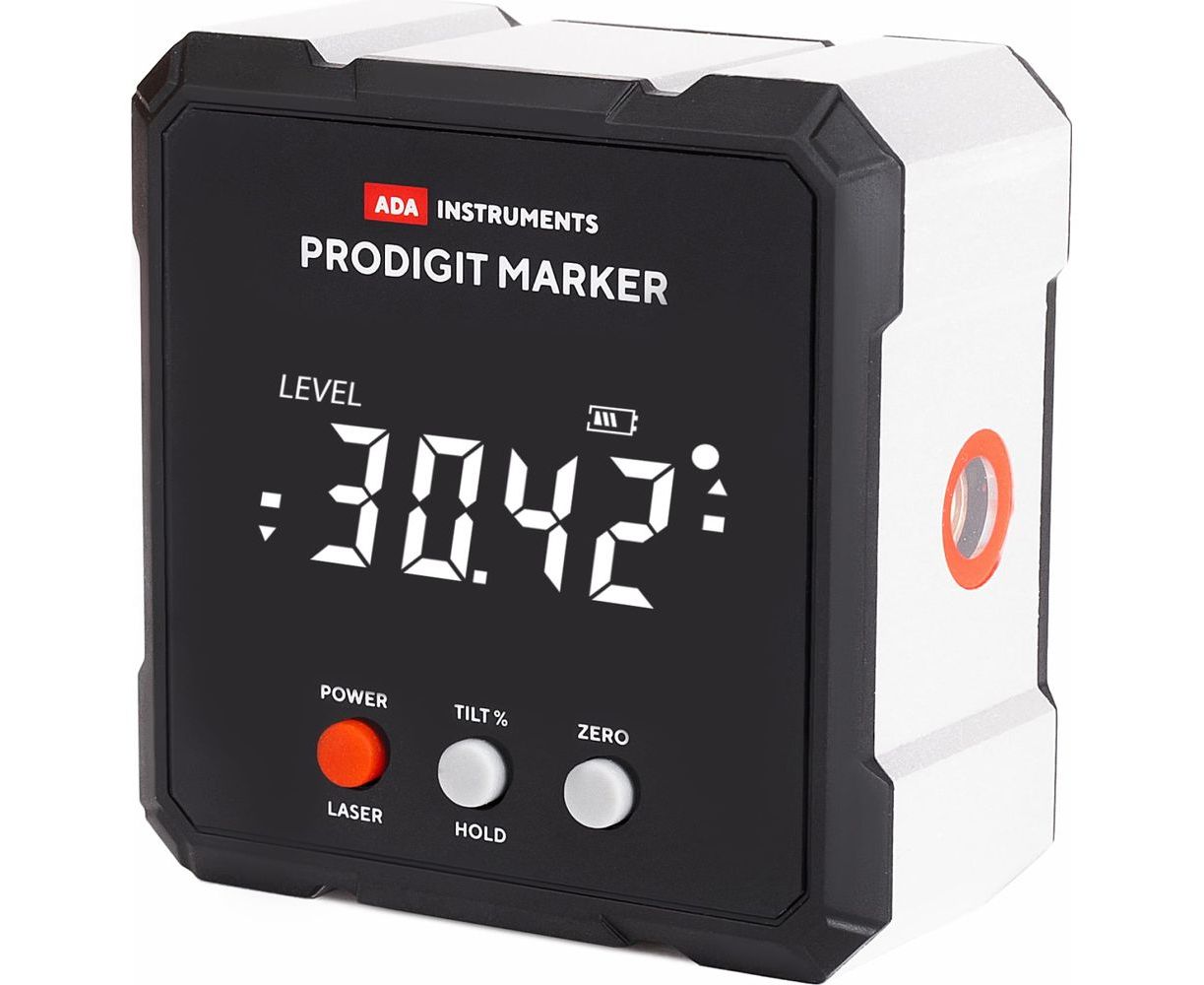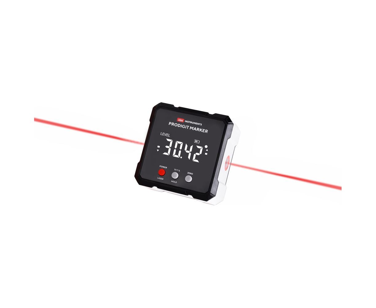 Электронный уровень с лазерным маркером ADA ProDigit MARKER А00671 позволяет быстро и точно определить угол отклонения поверхности от горизонта или вертикали.