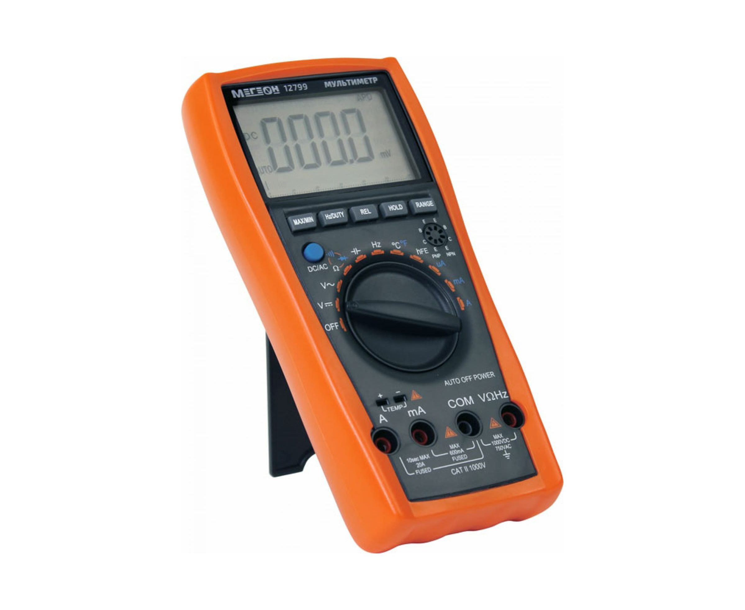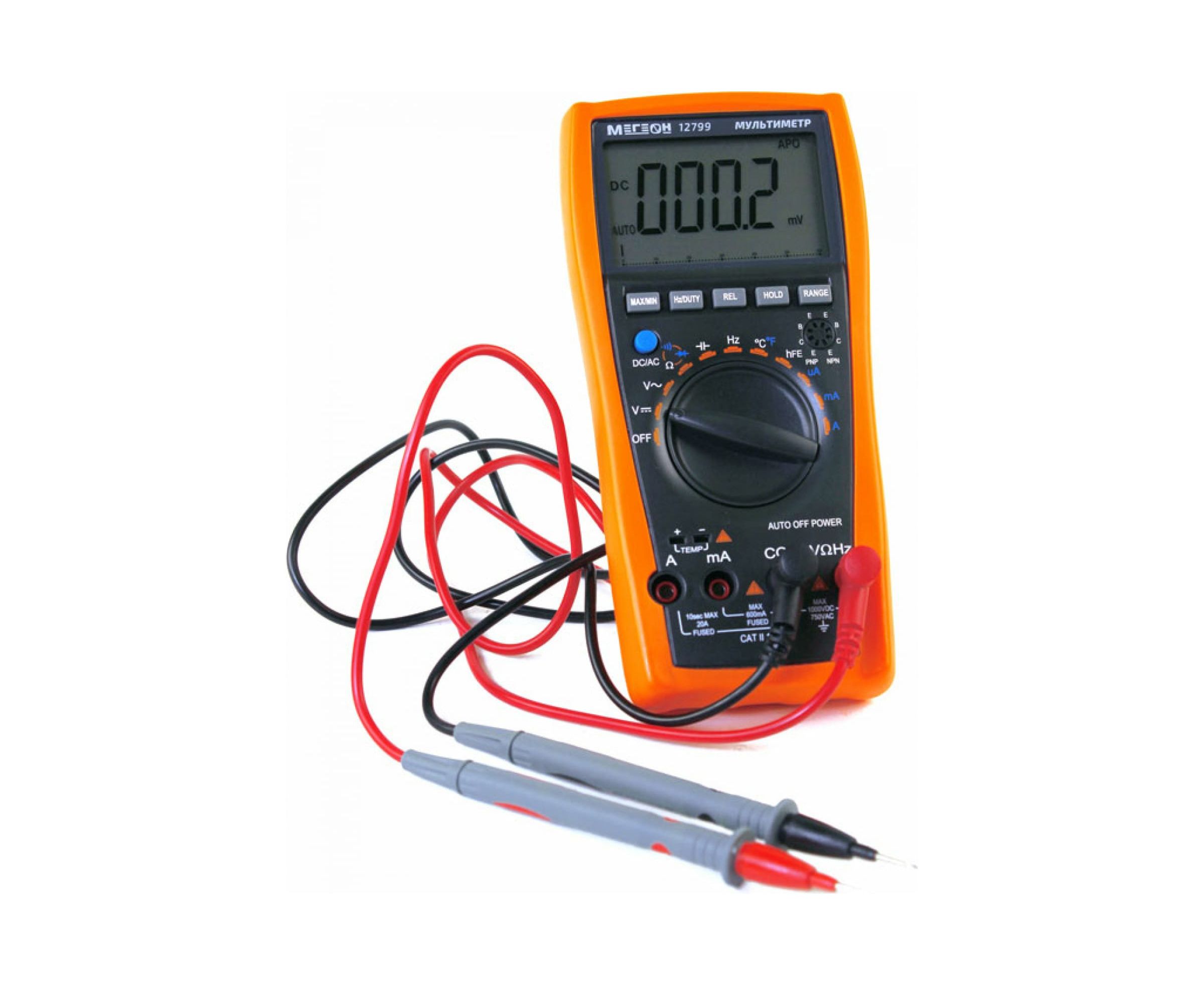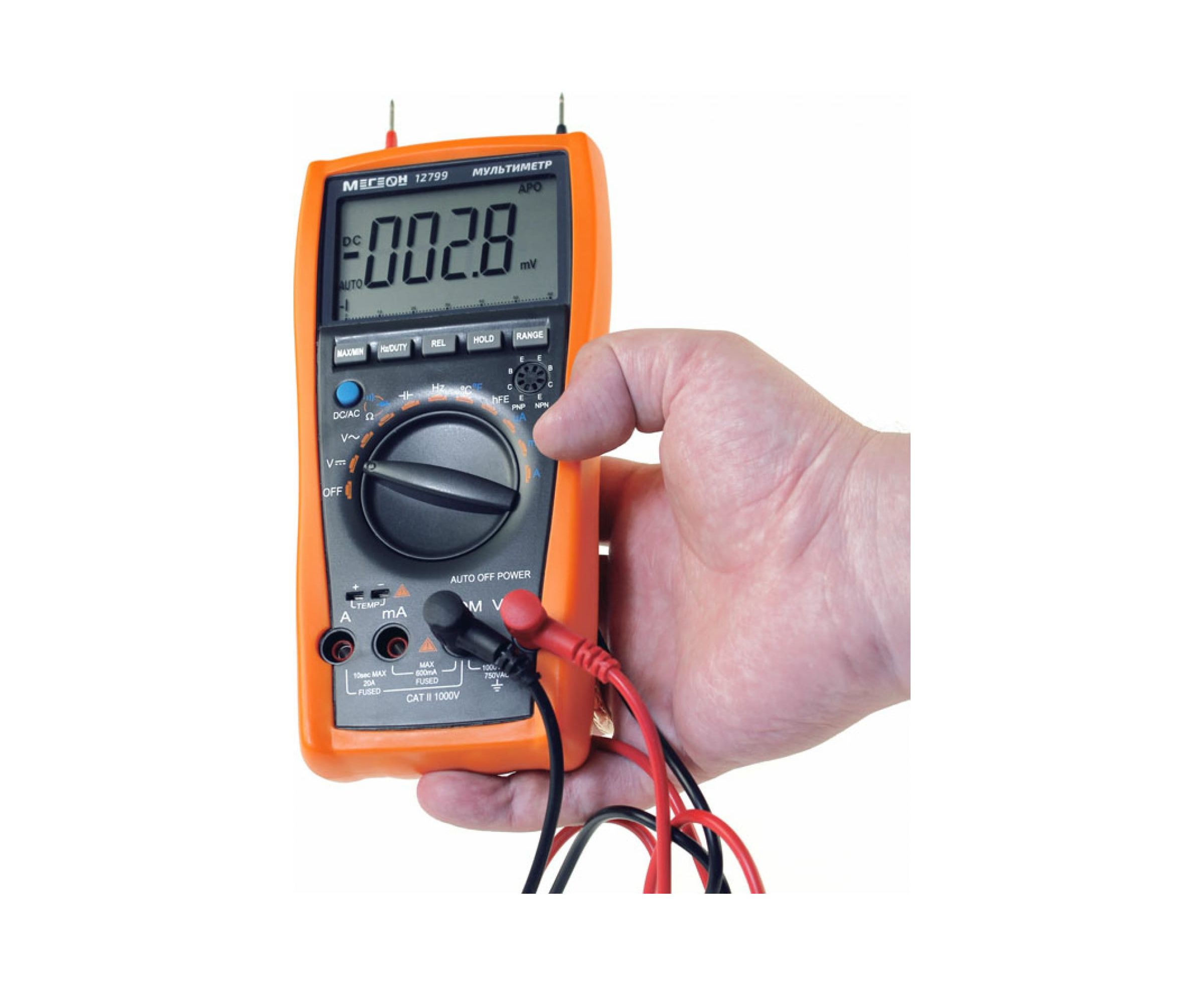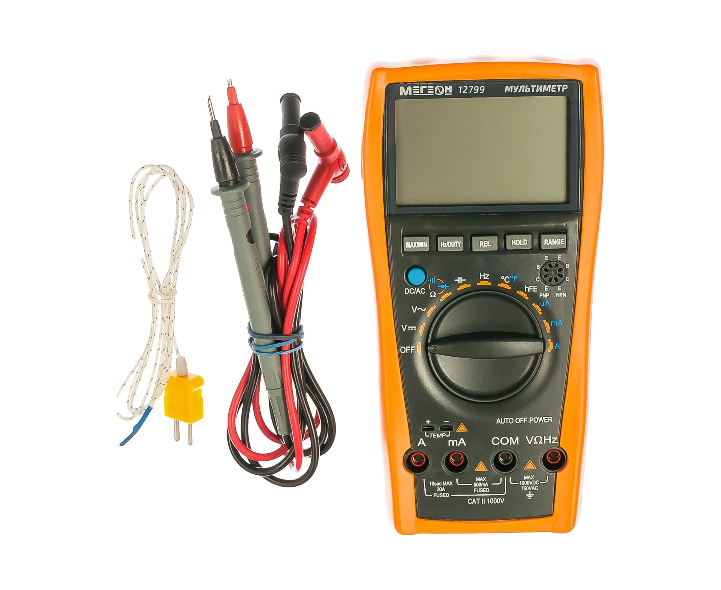 Цифровой мультиметр МЕГЕОН 12799 является многофункциональным измерительным прибором. Подходит для определения таких параметров, как напряжение, сила тока, сопротивление, емкость, частота и температура.