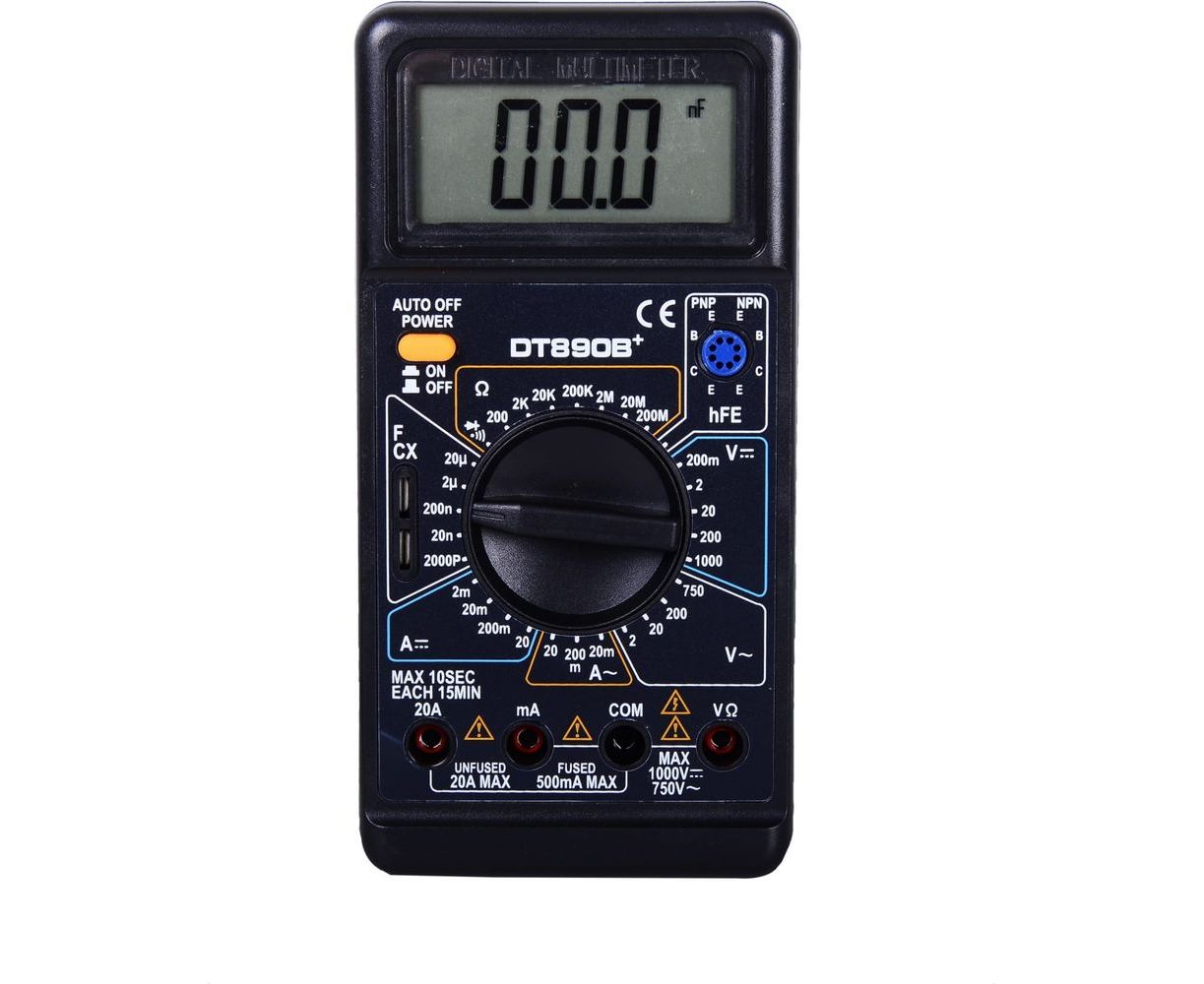 Компактный, износостойкий, 3 1/2 - разрядный мультиметр DT890B+ предназначен для измерения постоянного и переменного напряжения, постоянного и переменного тока, сопротивления, емкости, проверки диодов, транзисторов, звуковой прозвонки. Метод измерений - АЦП двойного интегрирования с автоматической коррекцией нуля, автоматическим определением полярности и индикацией перегрузки.