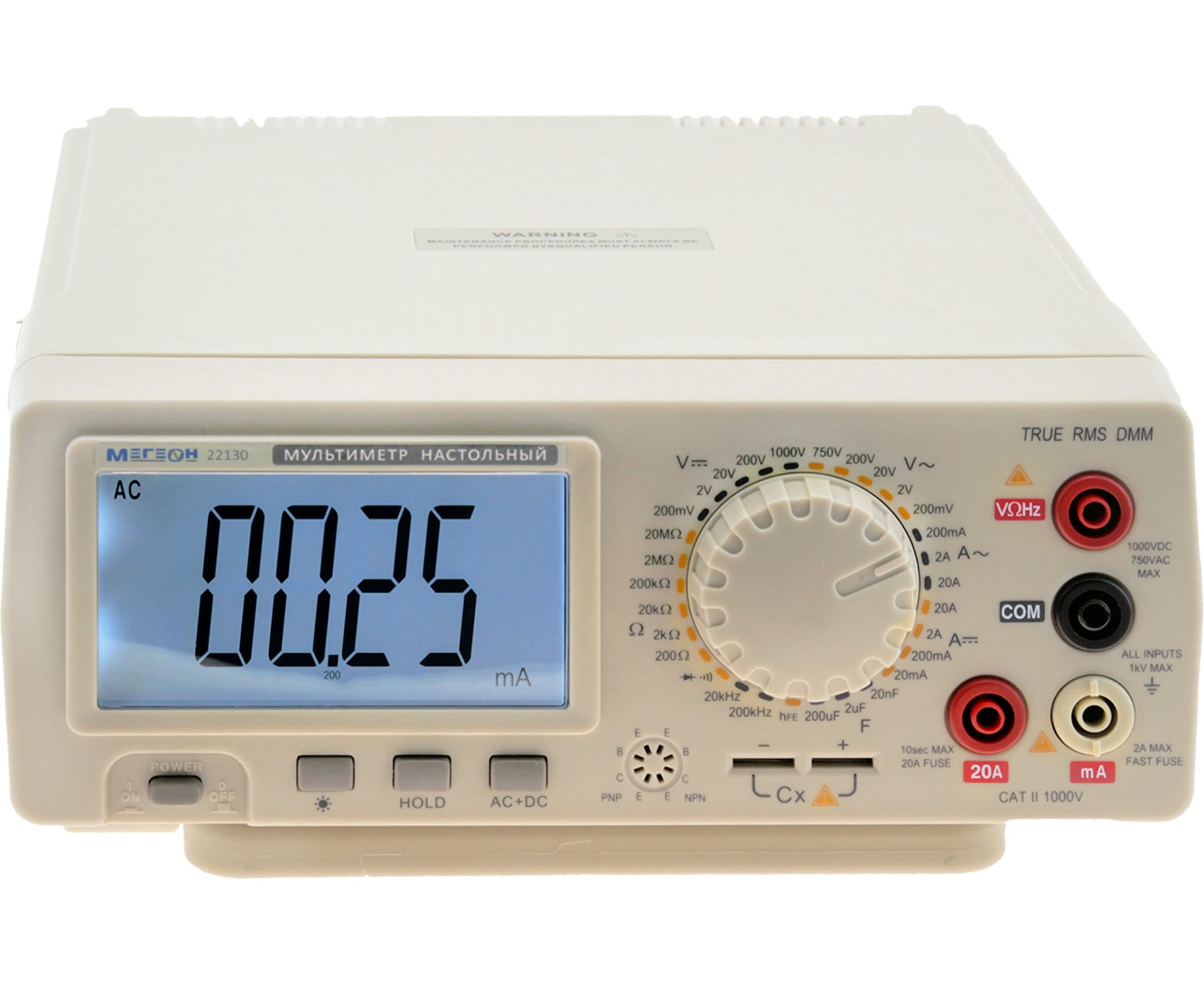 Настольный мультиметр МЕГЕОН 22130 используется для измерения напряжения, тока, сопротивления, частоты и емкости. Также подходит для проверки диодов и теста цепи на разрыв. Измерение параметров осуществляется на основе истинных среднеквадратичных значений, что обеспечивает высокую точность. Дисплей прибора имеет подсветку, позволяющую легко считывать данные в слабоосвещенных местах.
